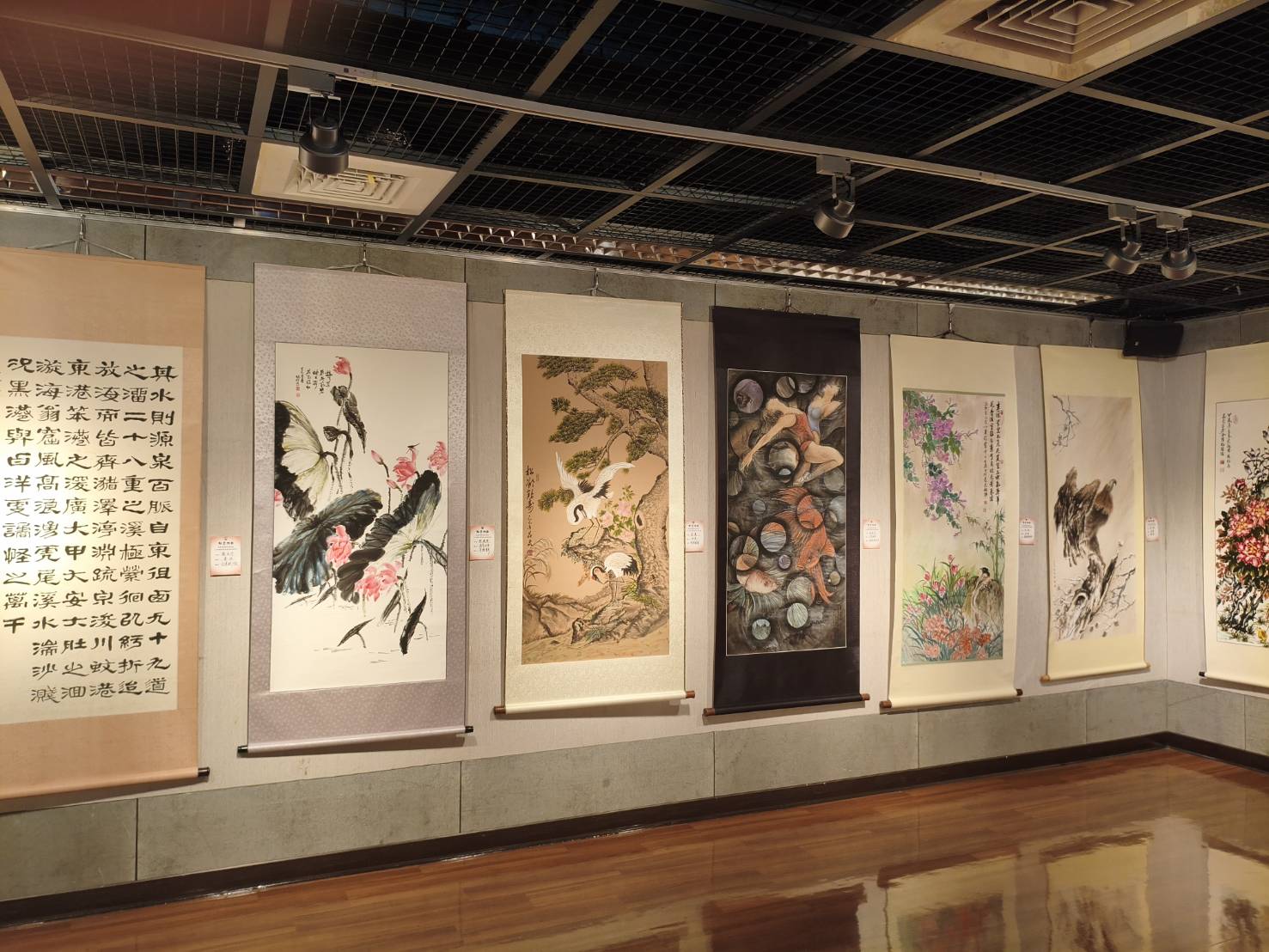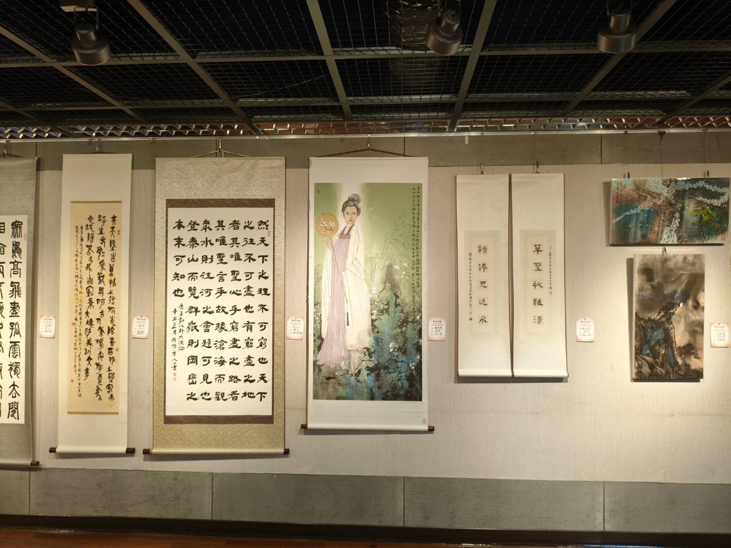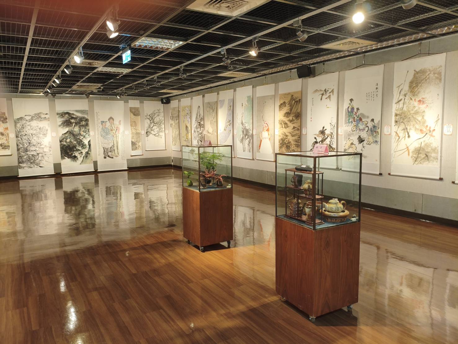 展出作品涵蓋書法、繪畫與陶藝等多元媒材:書法部分網羅篆、隸、楷、行、草及榜書等書體,筆力蒼勁、風格多元,各展其長;繪畫作品則涵蓋水墨、彩墨、工筆、油畫與絲畫等形式,兼容傳統與當代觀點,呈現豐富的視覺語言;陶藝創作亦融入書畫精神,形式別具、意涵深遠,充分體現台灣藝術創作者對文化精神的堅持與創新。