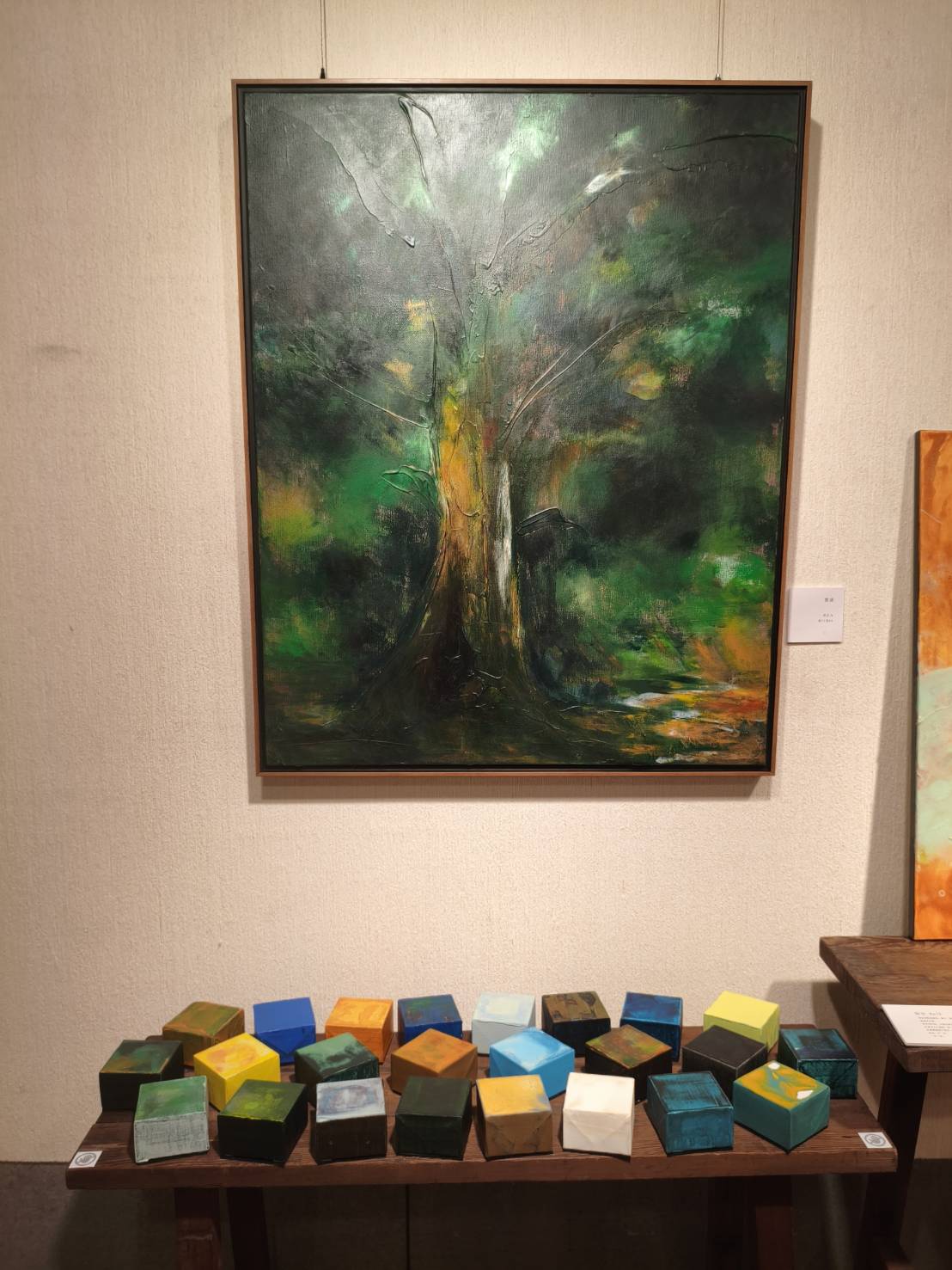 來自台南白河的藝術家林虹誼,11月12日至11月30日於嘉義市文化局文化藝廊3樓舉行「霧之上-林虹誼創作展」,展出膠彩、綜合媒材、壓克力等作品共約100幅,另外還有詩般的文字裝置呈現,是一次極為特別的展出。