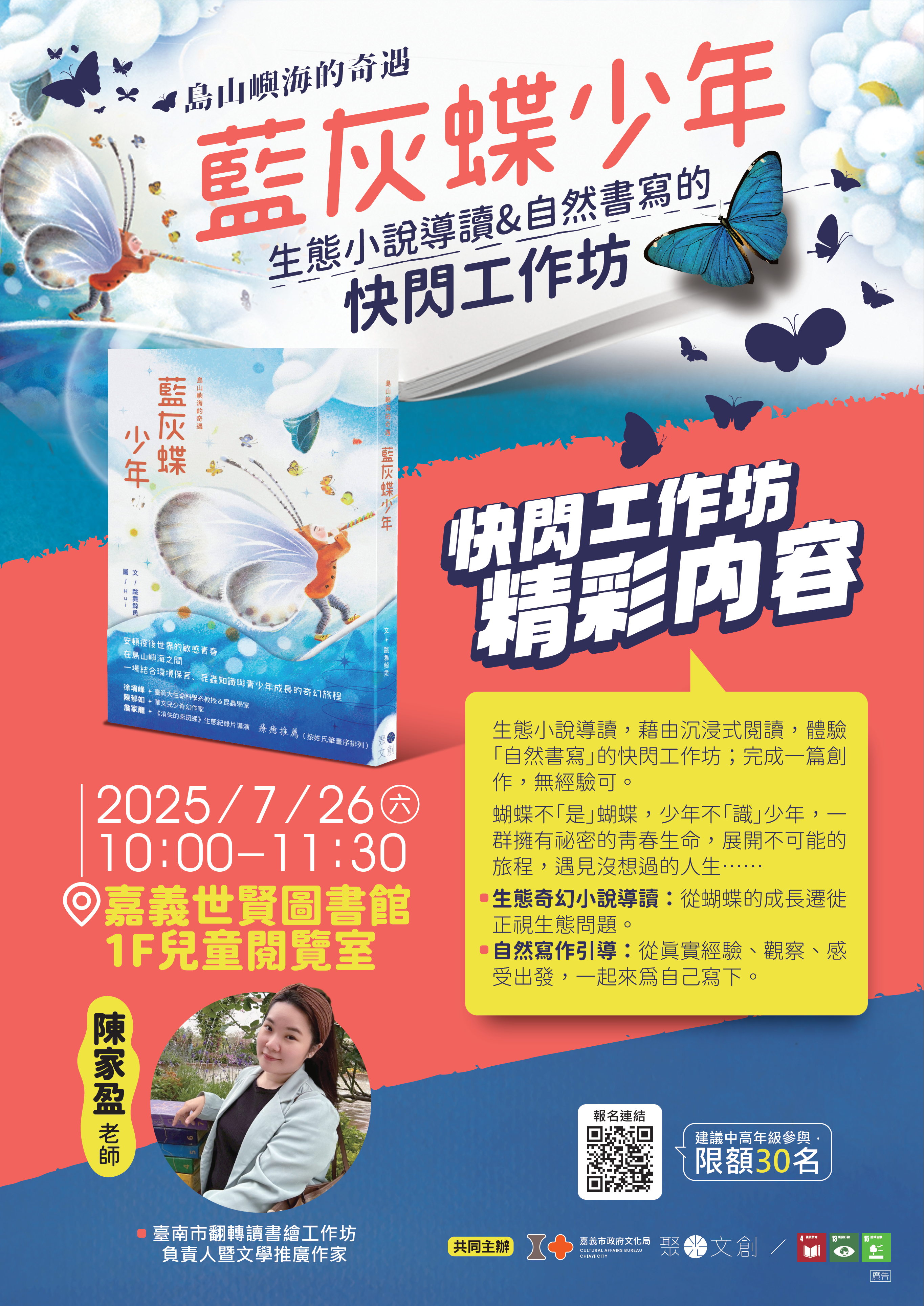 ★內容:生態小說導讀,藉由沉浸式閱讀,體驗「自然書寫」的快閃工作坊;完成一篇創作,無經驗可。