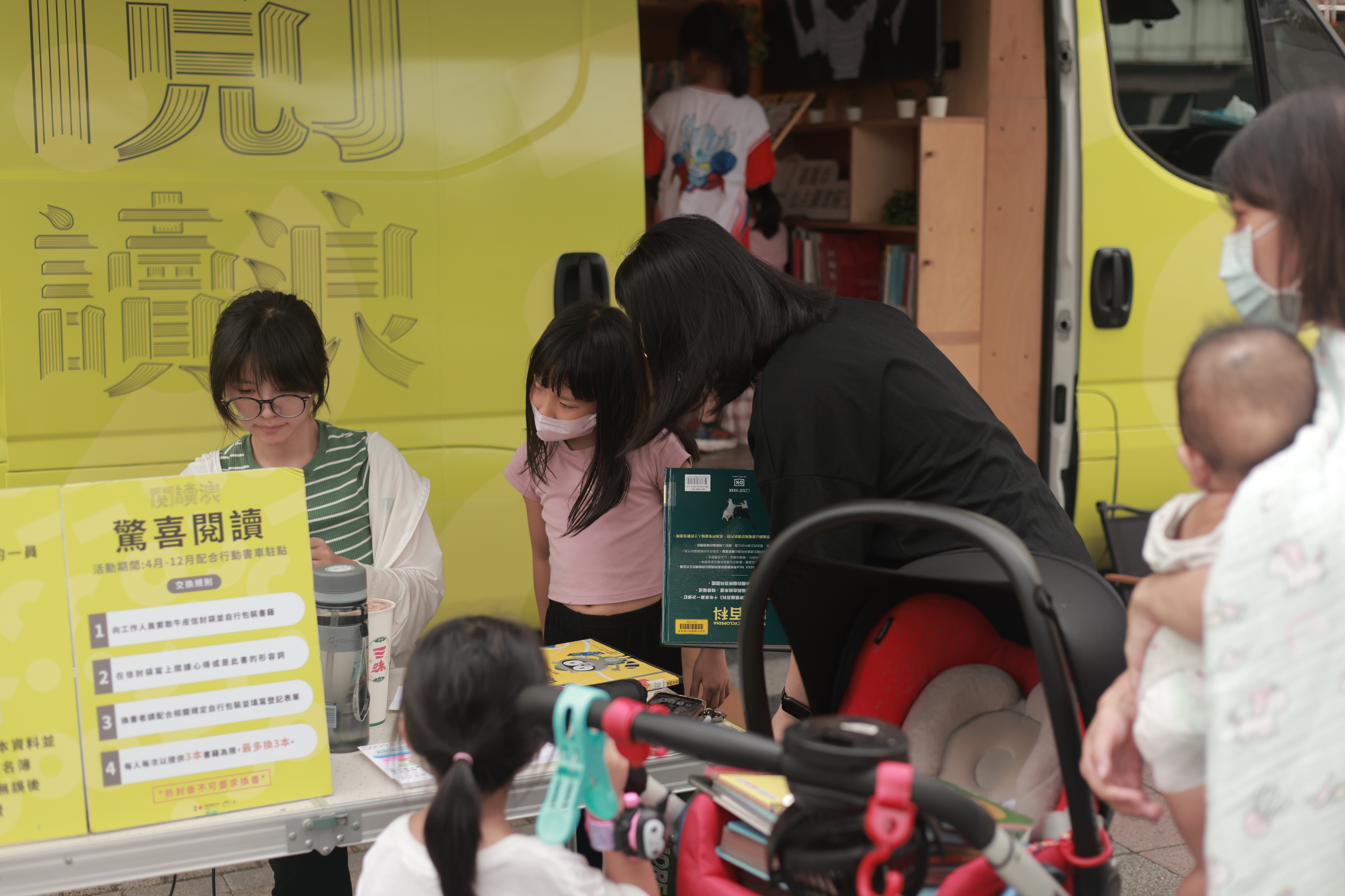駐點當天,書車上除展示歷史文化主題閱讀專區,更有經典的系列活動,包括「閱讀行家集點Go!」只要完成借閱任務就能把限量質感徽章帶回家;「書車繪不繪」畫出你心目中獨一無二的行動書車;讓你驚喜滿滿的好書交換「驚喜閱讀」;最後在體驗完戶外閱讀後,留下你的讚,共創嘉義心情閱讀版圖的「閱讀浪讚+1」,8月6日歡迎市民朋友記得攜帶實體借閱證或手機下載愛嘉義app,前來廟埕探索諸羅城的文化浪潮,共享愜意的午後閱讀時光!