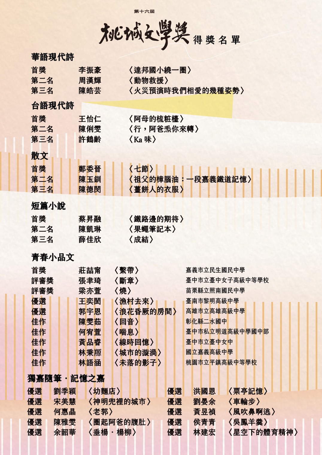 2025第十六屆桃城文學獎 得獎名單公告.ᐟ.ᐟ