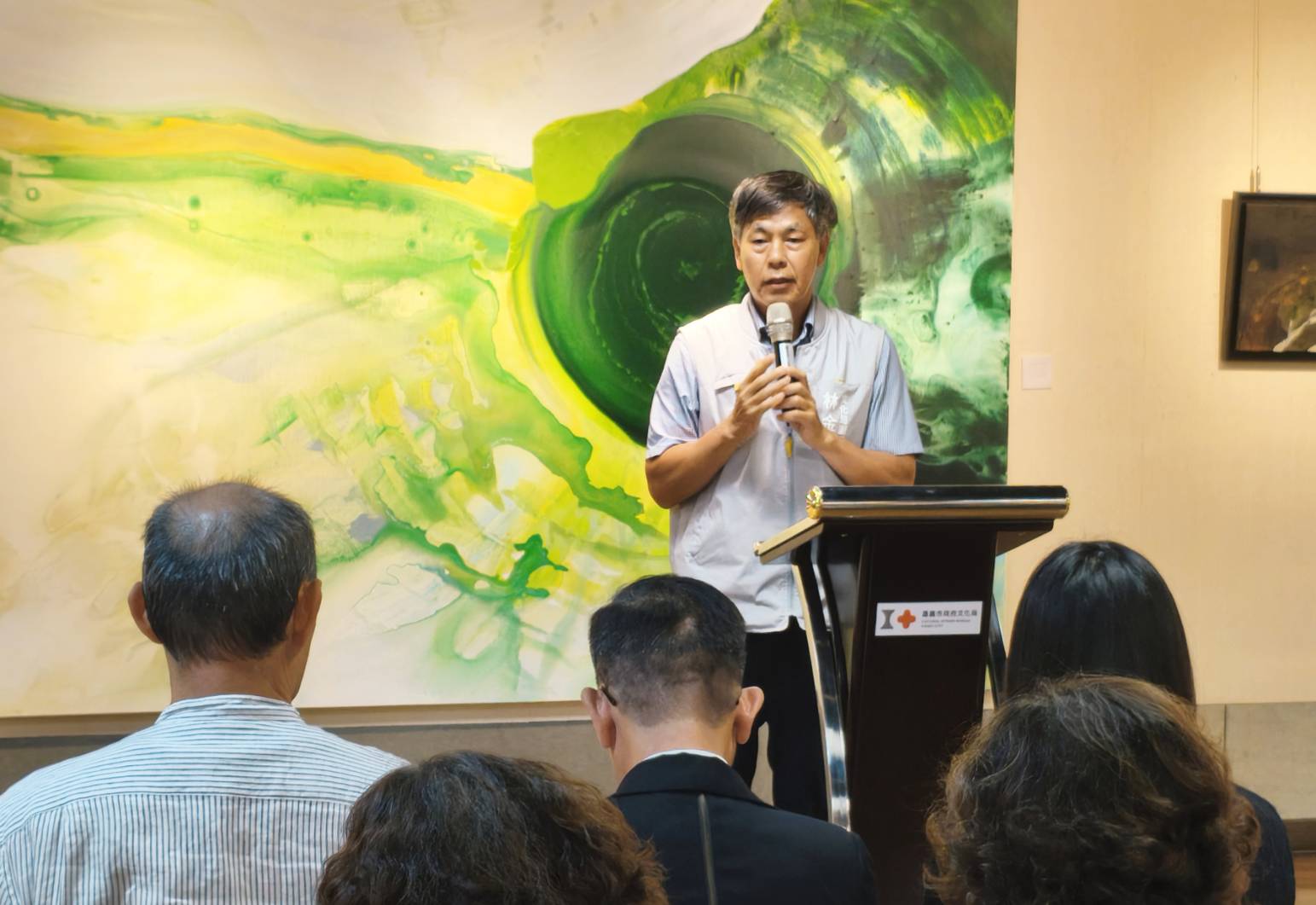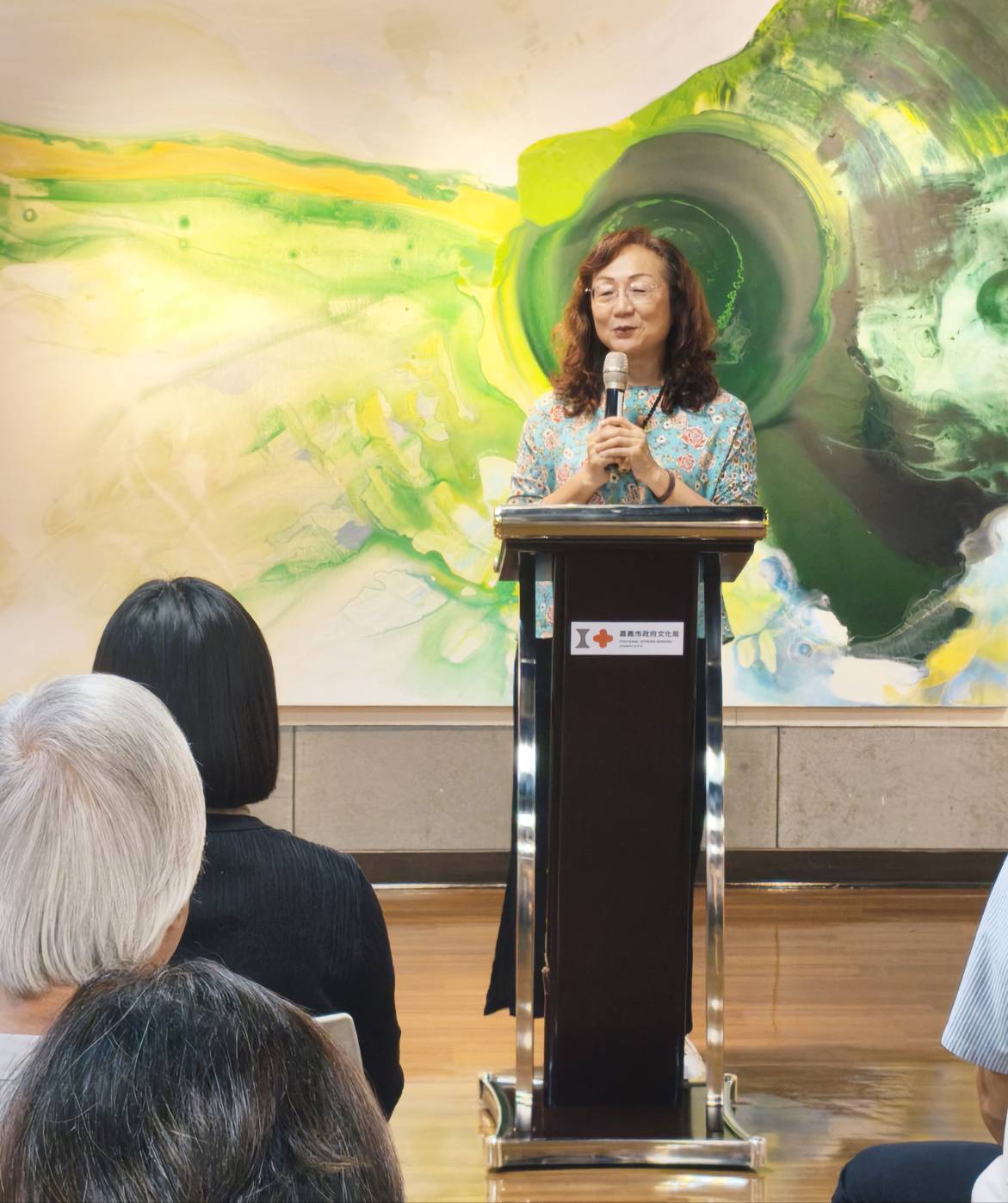 嘉義市政府文化局局長謝育哲由藝術家林虹誼導覽,仔細欣賞每一幅畫作,其中一幅畫《鳴響》是林虹誼在山上聽到鹿叫了一聲所作的創作,謝局長相當喜歡,覺得畫家的創作意念非常特別,用色構圖也很大膽。
