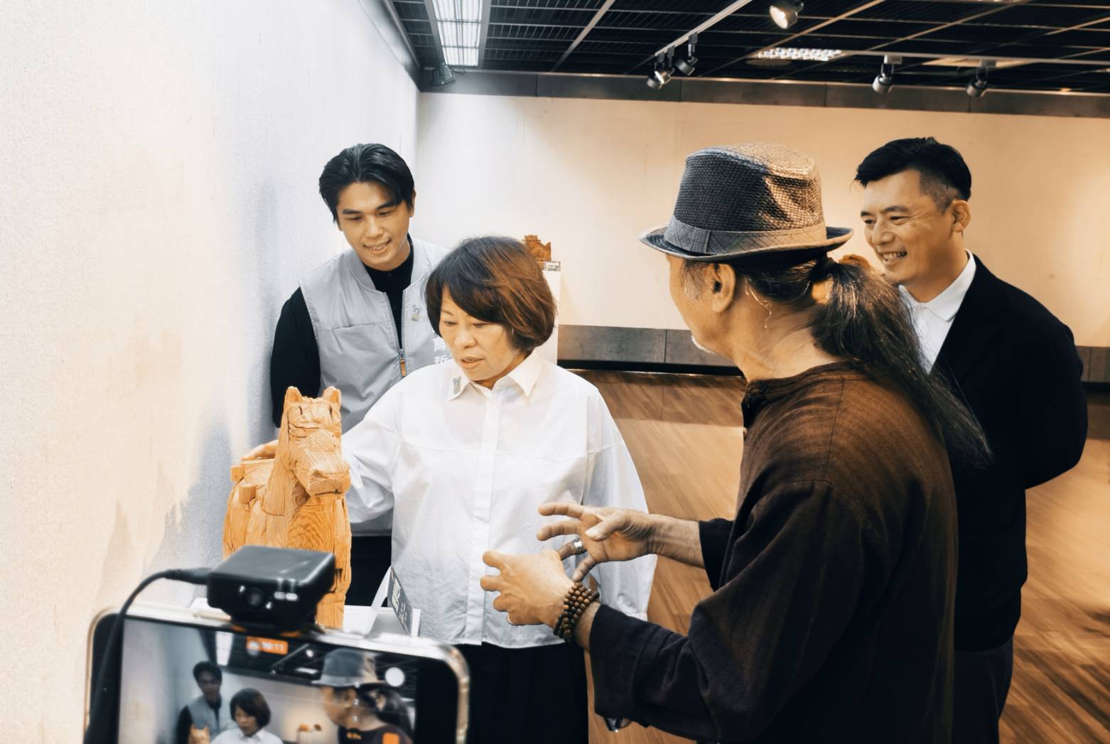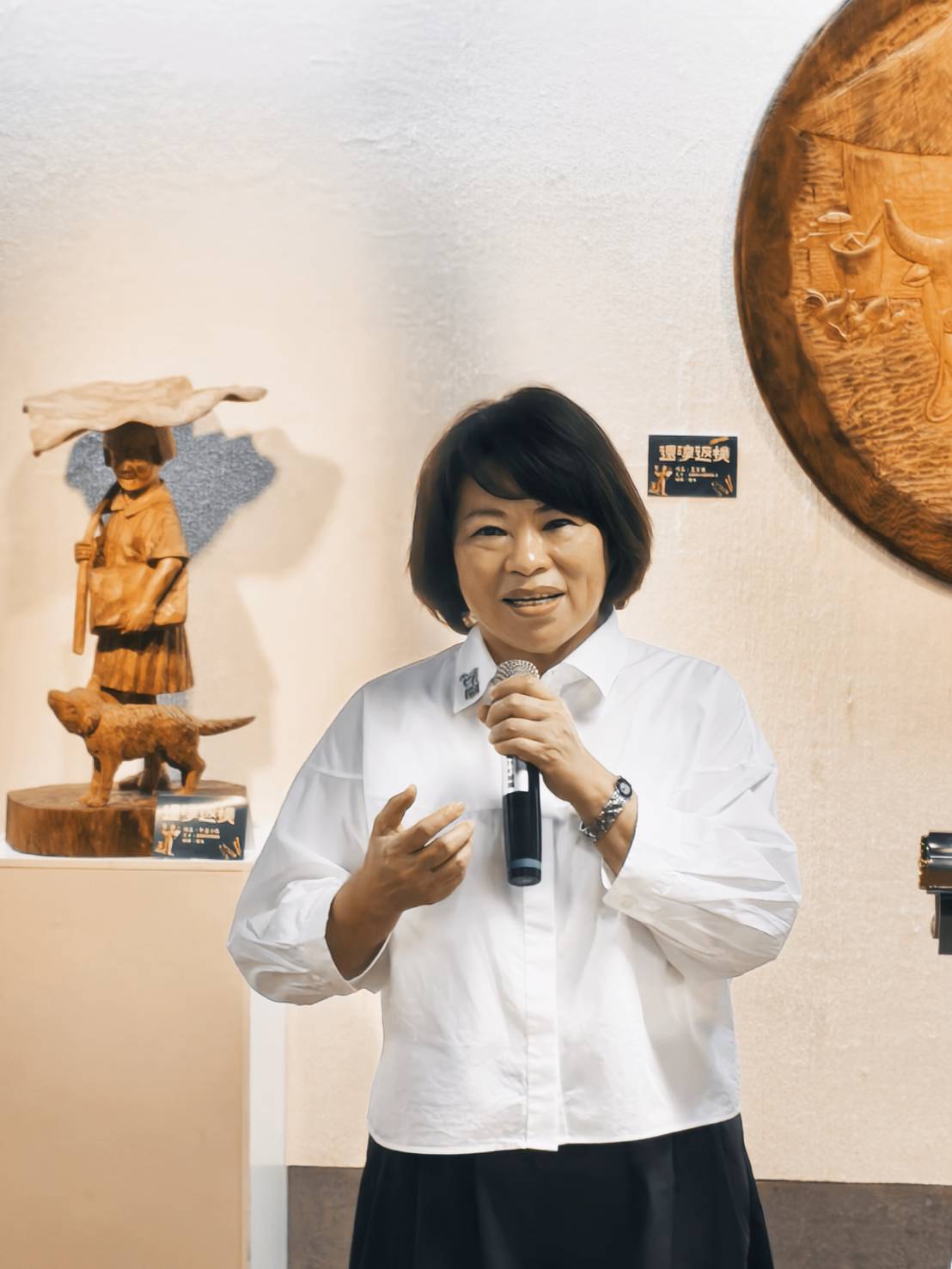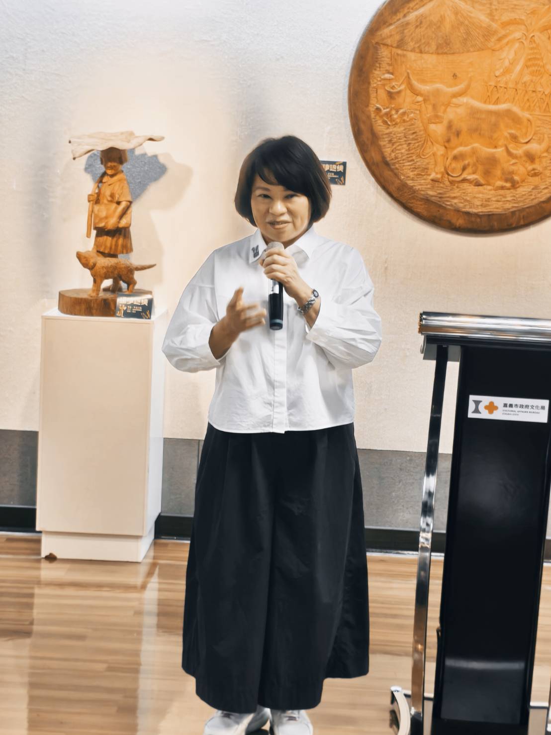 文化局長謝育哲表示,文化局在黃市長的大力支持下,也持續不斷推動傳統工藝的保存與創新,因此今年辦了「大工藝家」展覽,並且頒發了「嘉義獎」給8位藝師,另外也推動嘉義市木雕協會到三義參訪交流展出,以木雕來說,木頭可以不斷利用,甚至可以拼貼再雕刻,或是撿拾的荒木廢木都可以創造新生命,這些都是符合「永續」的目標,同時更是勇媽市長「藝術才能贏得千秋」的具體實踐。這次李宗霖大師的木雕展期剛好文化局也正在舉辦「320+1城市博覽會」,歡迎大家走進嘉義的每個角落,也走進文化藝廊,一起欣賞嘉義的美。
