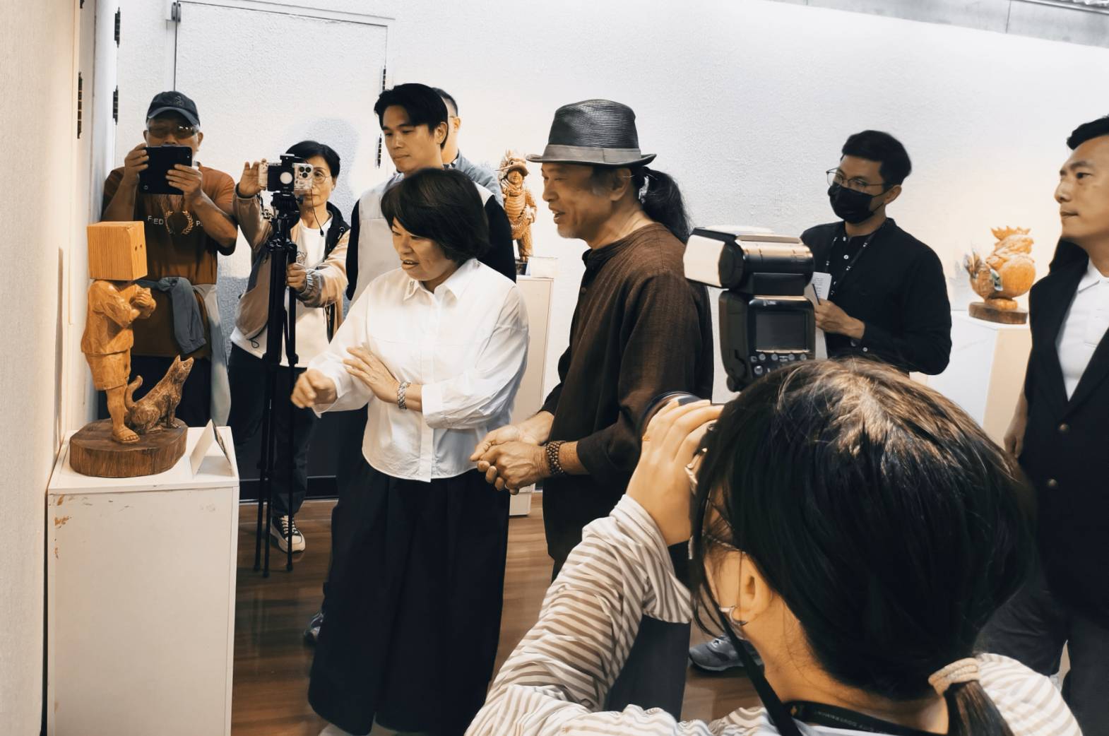「還淳返樸-114年李宗霖木雕個展」12月7日於嘉義市文化局文化藝廊3樓舉行開幕式,嘉義市市長黃敏惠、嘉義市政府文化局局長謝育哲、嘉義市立美術館代理館長林金龍、前文化局局長也是資深書法家饒嘉博、雲科大文化資產維護系教授王新衡、以及嘉義市木雕協會會員、雲林、三義、鹿港等木雕界等多位重要人士均出席與會。