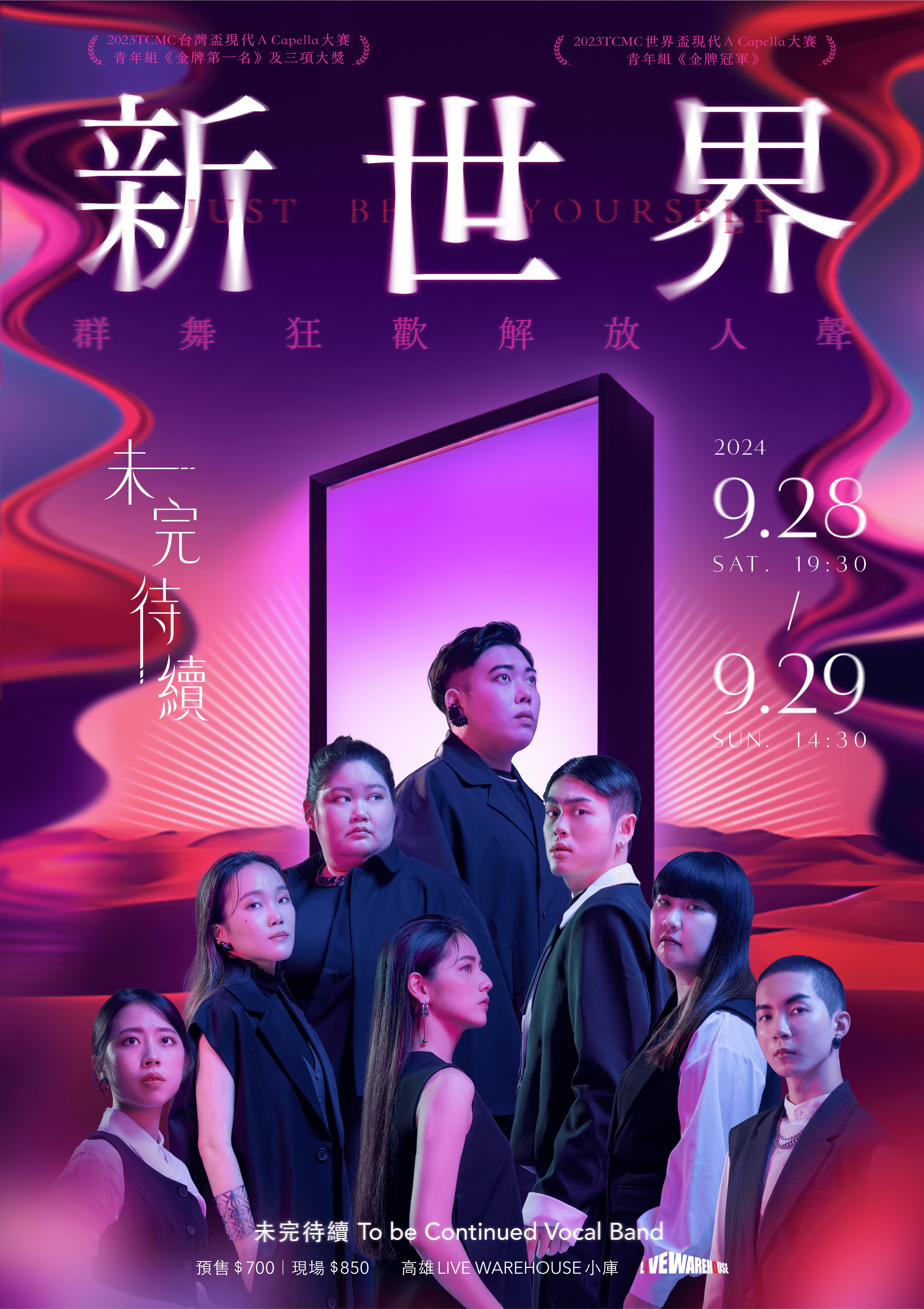 未完待續為台灣極少數以「唱跳阿卡貝拉」為特色之團隊,此次演出更以多元性別,自我認同,拋開枷鎖為宗旨,將打造一場「直視內心慾望,戀上內在自我」的人聲音樂派對,準備嗨翻新世界的所有子⺠。