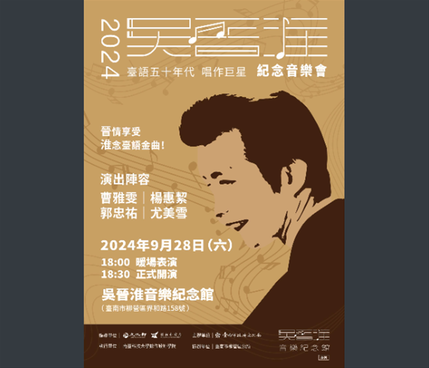 旨揭音樂會係為紀念臺灣音樂界的重要人物,特別對臺語流行音樂的巨大貢獻。吳晉淮是首批前往日本學習近代流行音樂理論的音樂人之一,他不僅在臺語歌壇上有著深遠的影響,還以作詞作曲家、歌手和專輯製作人的多重身份,塑造了臺語流行音樂的發展歷史。透過這場音樂會,將演繹吳晉淮及其他音樂大師的經典作品,帶領觀眾重溫臺語歌曲的黃金年代,同時保存,並傳承這些豐富的文化資產。此外,這場音樂會也呼應臺南400年這一重要歷史背景,展示臺南作為「文化古都」的深厚底蘊,並透過音樂弘揚本地文化,促進地方文化的永續發展。