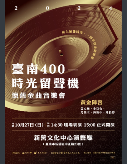 轉知-南臺學校財團法人南臺科技大學承辦臺南市政府文化局「2024吳晉淮紀念音樂會」與「臺南400—時光留聲機」懷舊金曲音樂會,歡迎踴躍報名參加