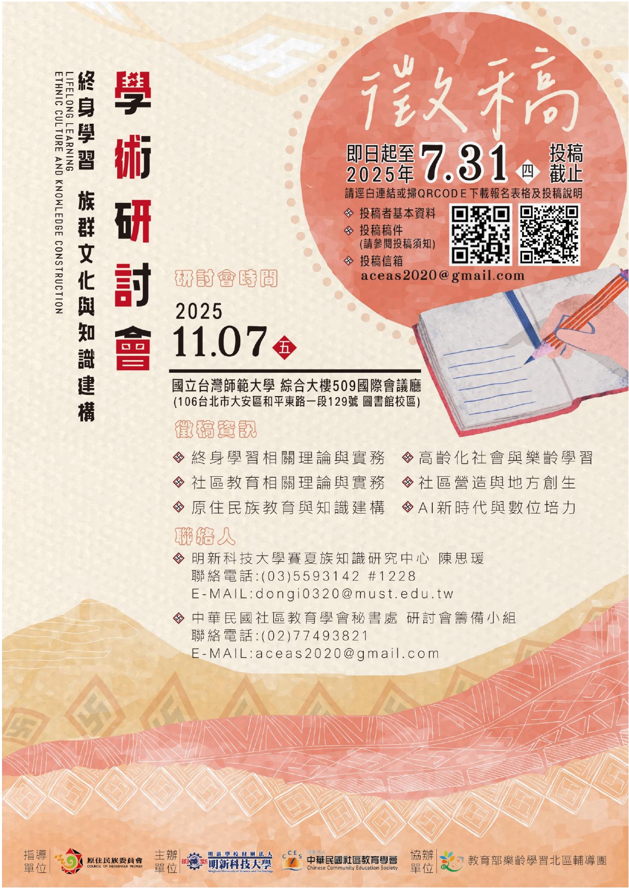 中華民國社區教育學會秘書處 研討會籌備小組,聯絡電話 :(02)77493821。