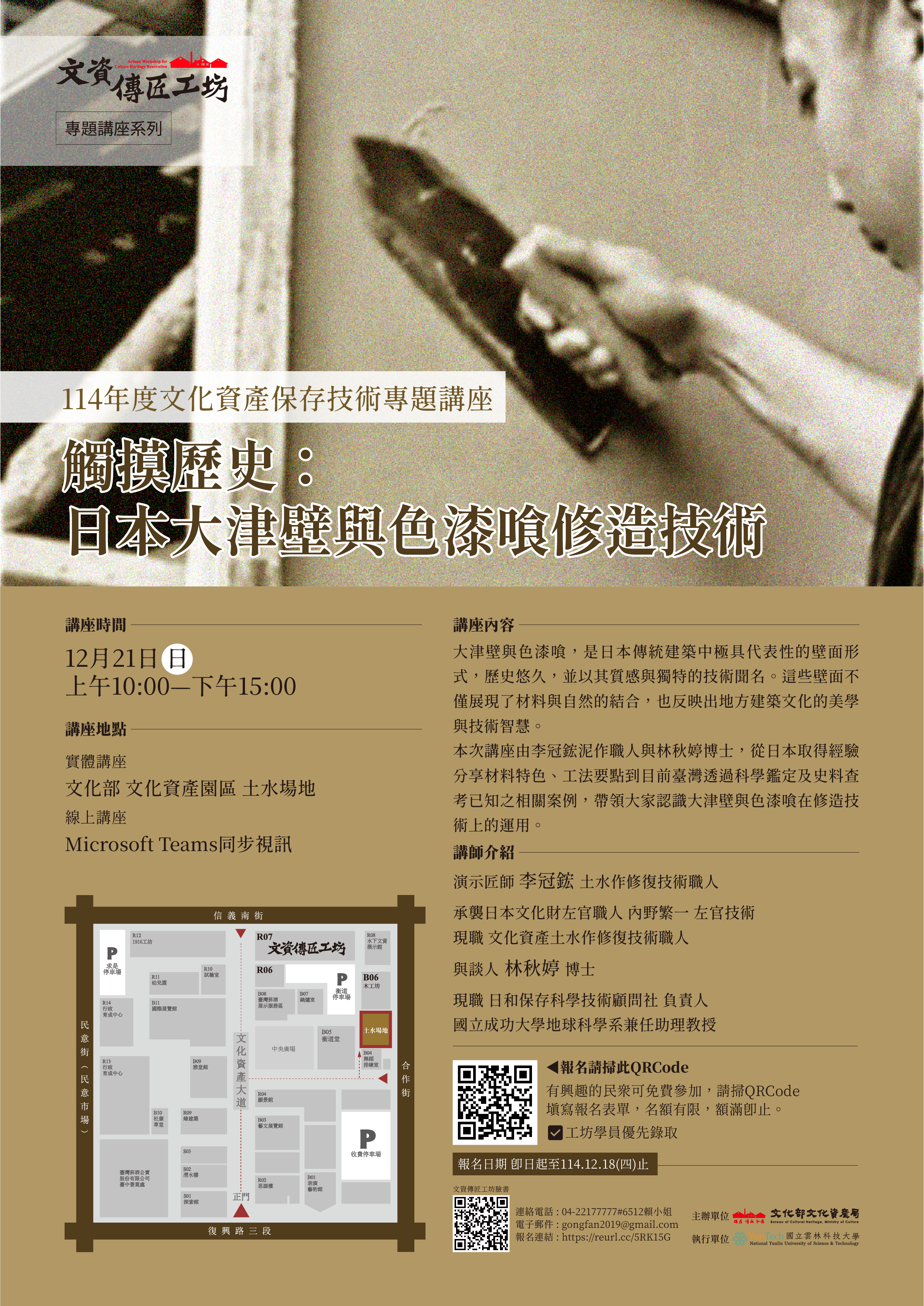 轉知-「觸摸歷史-日本大津壁與色漆喰 修造技術」文化資產保存技術專題講座活動資訊1份