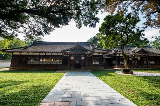 座落於嘉義公園境內的嘉義市史蹟資料館,洋溢著濃濃和風,四周為翠綠樹林所環抱,為日治時期所遺留嘉義神社之齋館及社務所,創建於昭和18年(西元1943年),為「書院造」的日本式樣建築,藝術表現優雅,展現木構造建築之美。