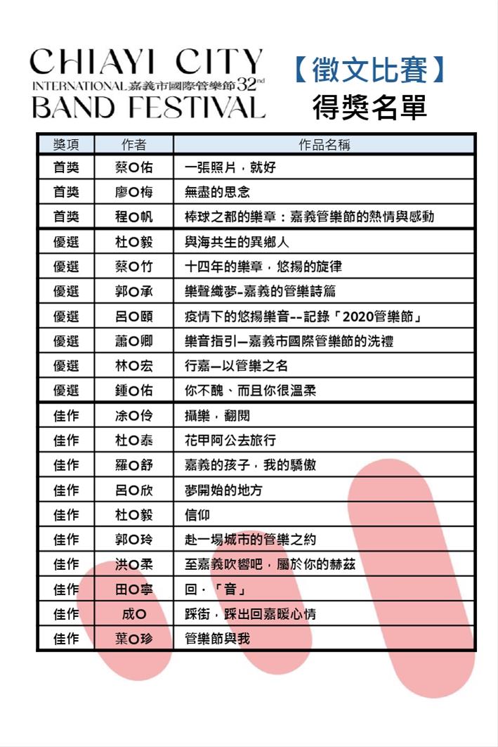 2024第32屆嘉義市國際管樂節【徵文比賽及短影音競賽 得獎名單公布】