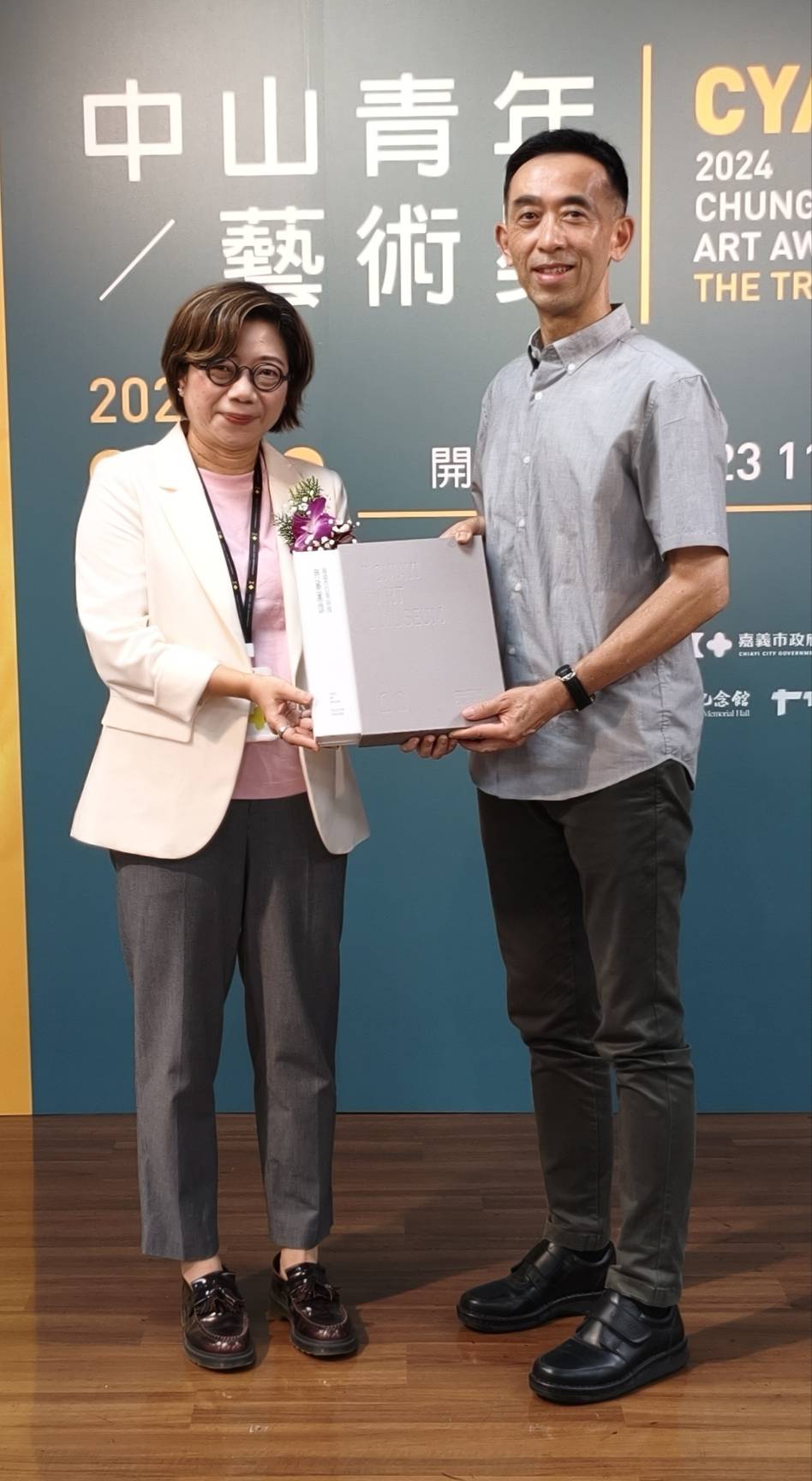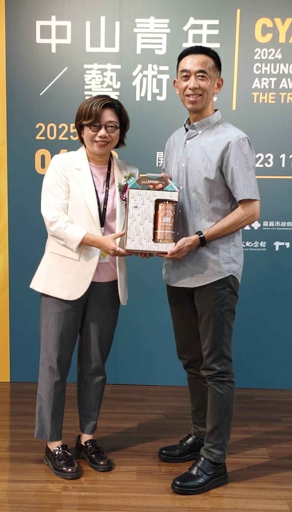 4月23日上午11時於嘉義市文化局文化藝廊4樓舉行開幕式,國父紀念館館長王蘭生致贈感謝狀及紀念品,由嘉義市立美術館館長陳佳琦代表市長黃敏惠接下,陳館長並回贈嘉義市立美術館的《典藏圖錄》及伴手禮「莊家方塊酥」。