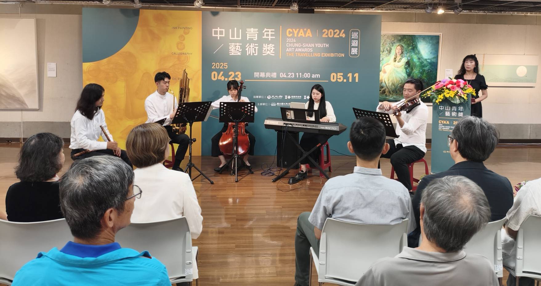 國父紀念館館長王蘭生特別感謝文化藝廊能夠提供優質的空間,讓「2024中山青年藝術獎」得獎作品到嘉義市展出,進行藝術交流。嘉美館陳佳琦館長則稱讚這次巡迴展,不論是西畫、書法、水墨,作品水準都相當高。陳館長表示,中山青年獎已經辦了九屆,延續國父紀念館歷史悠久的「全國青年書畫比賽」,培育出台灣藝術界不少重量級人物;而嘉義市的桃城美展今年也正進行第29屆複審,每年也收到來自許多徵件參賽作品,提供給全國創作者嶄露頭角的機會。