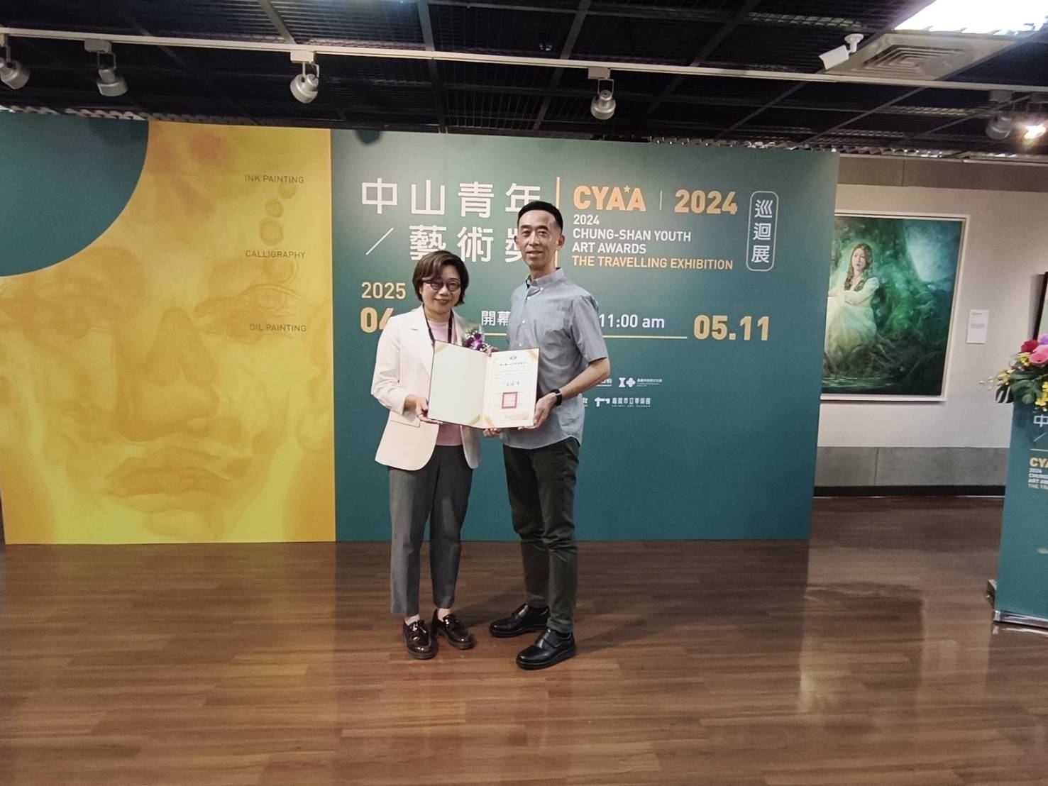 國父紀念館「2024中山青年藝術獎」巡迴展,自4月23日(三)至5月11日(日)於嘉義市文化局文化藝廊4樓展出精選得獎作品書法、水墨、西畫類共48件作品。