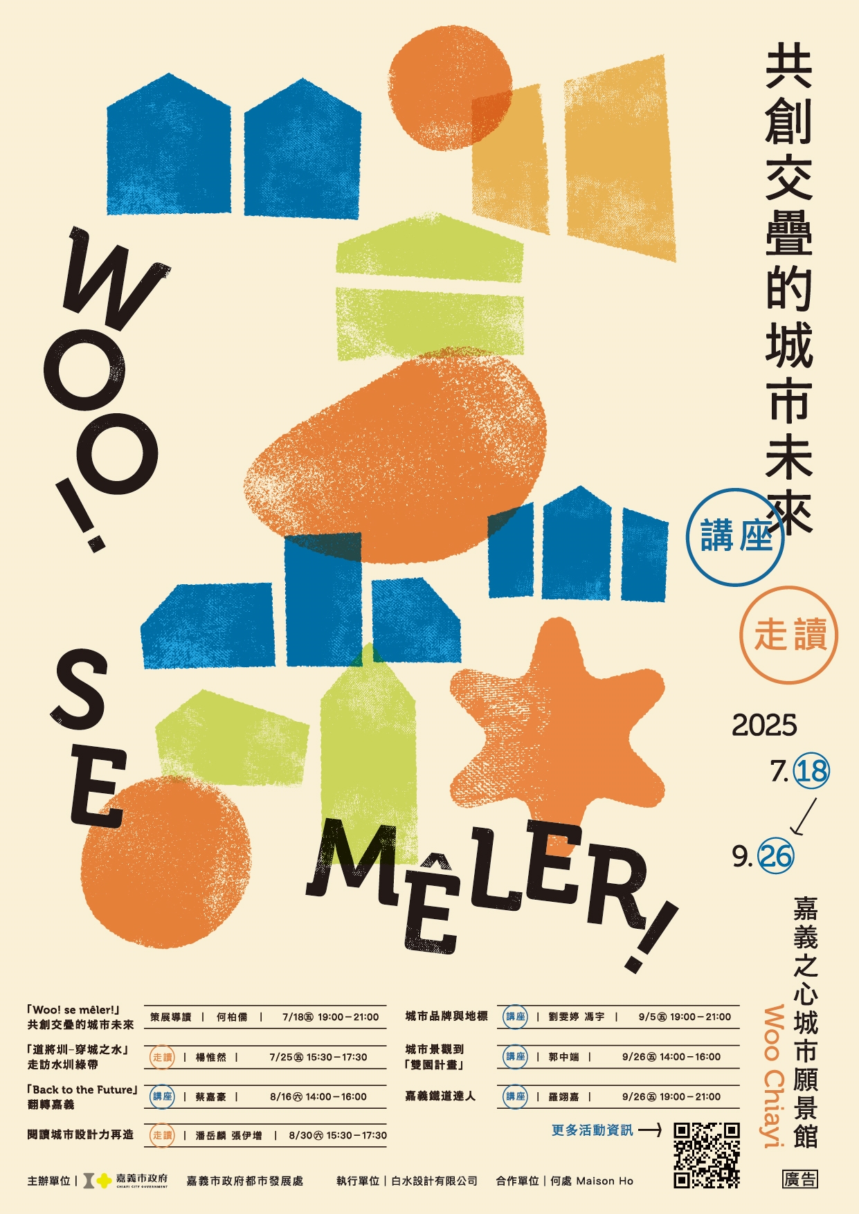 1、第1場:「Woo!se mêler!」共創交疊的城市未來, 114年7月18日(星期五)晚上6時30分至9時(含報到時 間)。