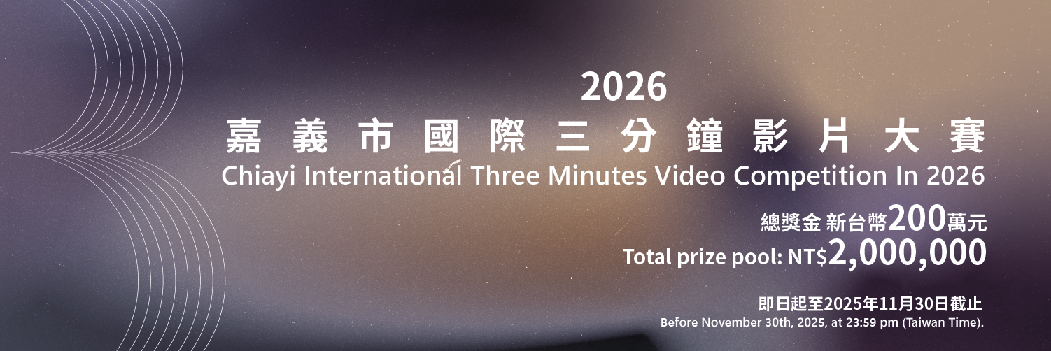 「2026嘉義市國際三分鐘影片大賽」為嘉義市主辦之國際短片競賽,英文名稱:Chiayi International Three Minutes Video Competition In 2026。擬徵集世界各地具有藝術性、原創性的當代實驗性極短片,以期臺灣能夠成為國際導演、影像創作者、藝術家等進行極短片創作及視覺藝術創作的交流平台。