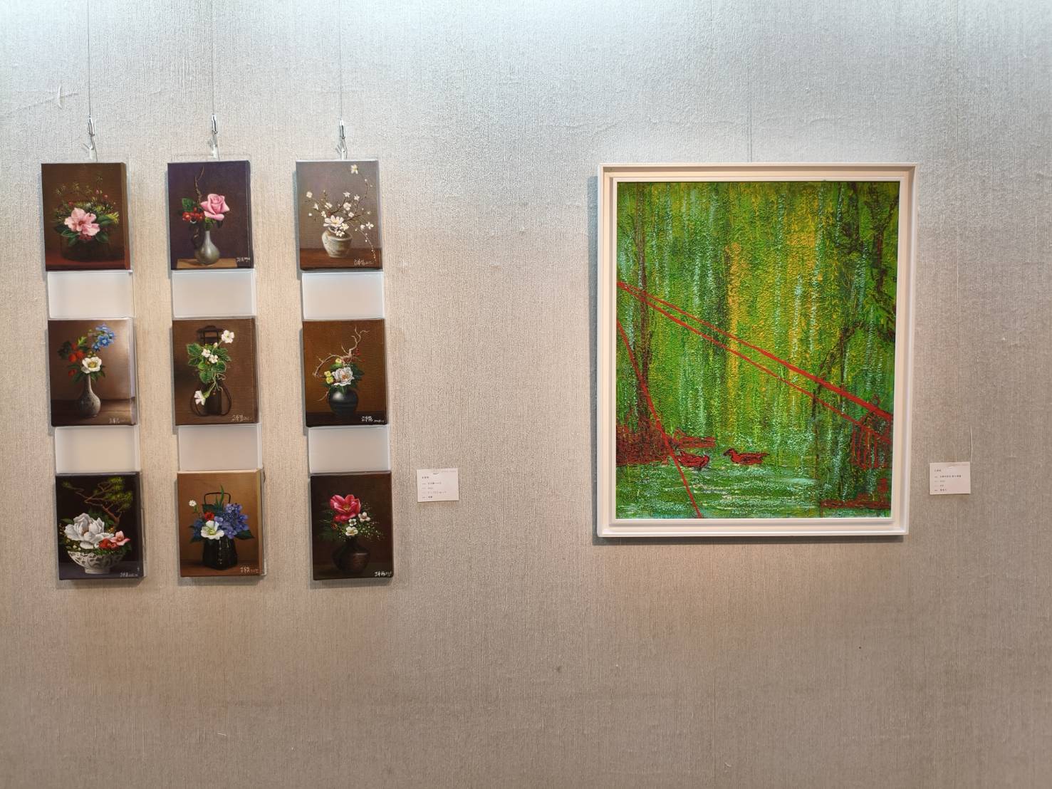 這次紅毛埤女畫會20週年展,共計有30位會員參展,作品件數多達78件,創作形式多元,從油畫、壓克力彩、速寫、燒烙畫到手札本,展出主題「東西對畫x美麗邂逅」,主要是想展現會員多年來在東方、西方各地旅行,或是沿途所見山林河川與磚瓦古城中,觸目所及光影的啟蒙,或是自我生命旅行的自我剖析,希望透過畫作上的自我對話,吸引畫外凝視的觀者,也能共同成就這場長達20年的美麗的邂逅。