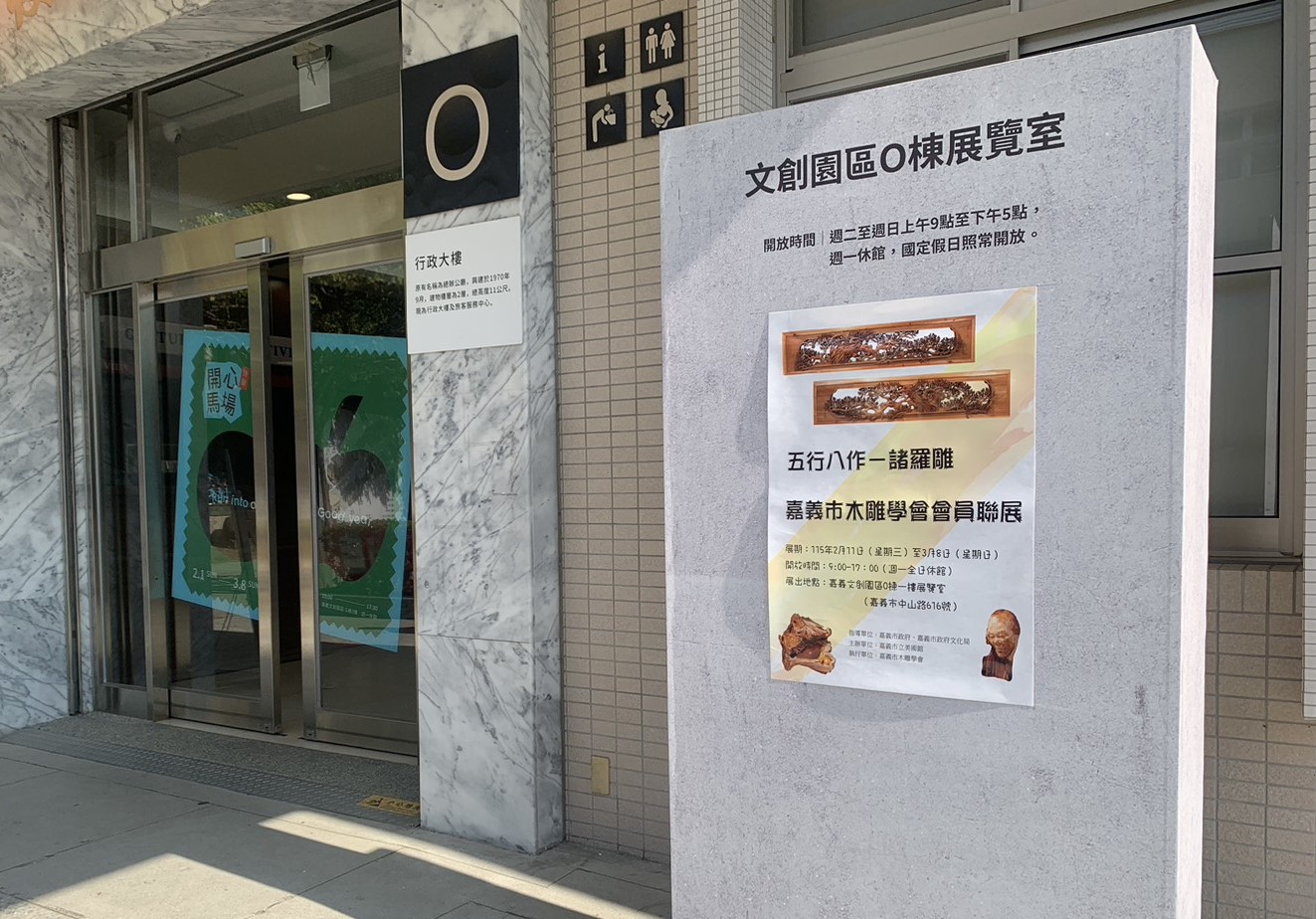 嘉義地區第一個成立的木雕團體-嘉義市木雕學會,訂2月11日至3月8日於嘉義文創園區O棟1樓展覽室舉辦「五行八作-諸羅雕-嘉義市木雕學會會員聯展」,將展出約60件作品,涵蓋人物、動物、故事等主題,手法強調精緻細膩的技藝,在傳統的基礎上發揚光大,展現多元創意,相信能帶給市民耳目一新的感受。