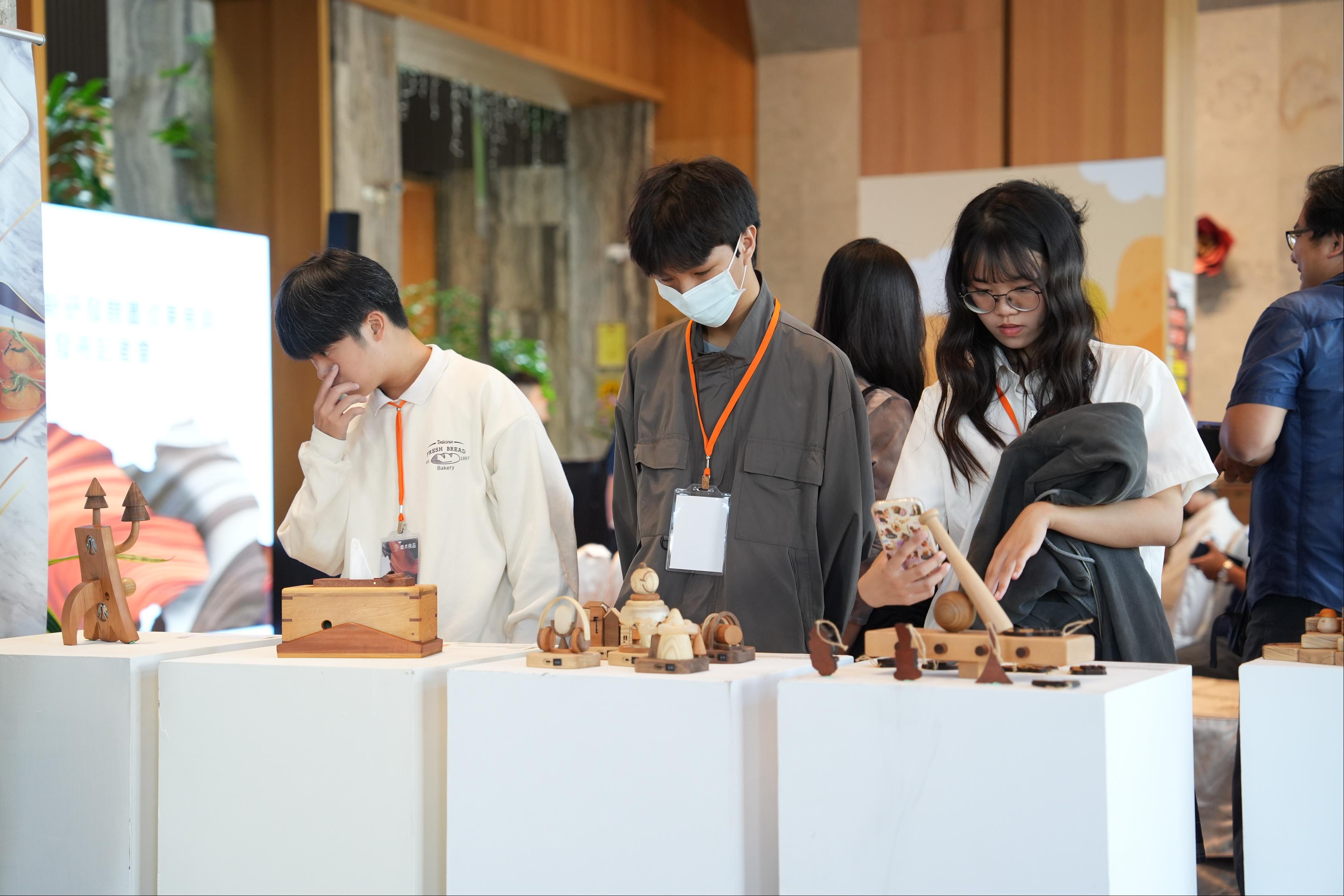 文化局也同步於南院旅墅一樓大廳展出本次獲獎作品,其中對木傢俱有很深厚歷史的屏東科技大學,囊括金獎和銅獎,此9件獲獎作品分別為:金獎「步循」,得獎者為徐弘力、甘依庭,國立屏東科技大學木材科學與設計系學生;銀獎「嘉義請坐」,得獎者為謝明全,史丹利空間設計師;銅獎「相約回嘉」,得獎者為黃浤舜、張議云,國立屏東科技大學木材科學與設計系學生;優選獎「神木衣帽架」及「刨發面紙盒」;佳作獎「等你回嘉」、「嘉一點-嘉義點點系列」、「來嘉」及「野生大寶貝-野生動物保育教具設計」,這些得獎作品充分展現「嘉義木都」文化底蘊,得獎者包括在學學生和業界設計師,全國木產品好手同場競逐,各自發揮對嘉義的想像與創意,其中屏東科技大學獲得金獎、銅獎及佳作數名,顯現學生族群創意無限的潛力。
