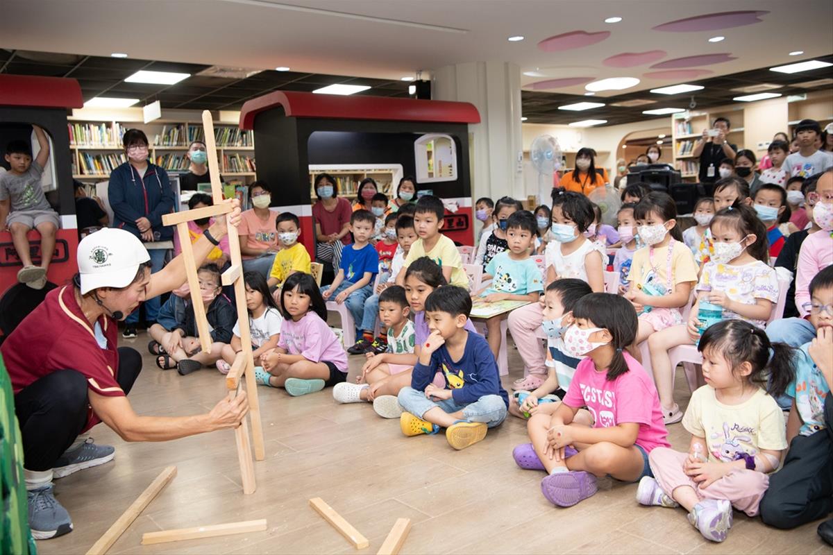 繪本導讀會下午三點半在文化局兒童閱覽室歡樂展開,有超過50位家長和小朋友共同參加,大家一起跟著小茶壺兒童劇團「木都劇」,快樂認識嘉義木都。繪本故事中的主角小男孩、阿里山小油菊花精、小豬與小猴子,活靈活現的表演與對話,讓小朋友樂開懷,更藉此機會認識了柳杉、樟木、檜木等,還有嘉義木都舊屋力的成果。話劇結束之後,蕭麗雎老師更畫龍點睛的講述《嘉義木語:棒球少年的森林奇遇》故事,還帶領大家用冰棒棍做小玩具,小朋友又看又聽又動手,超級開心。