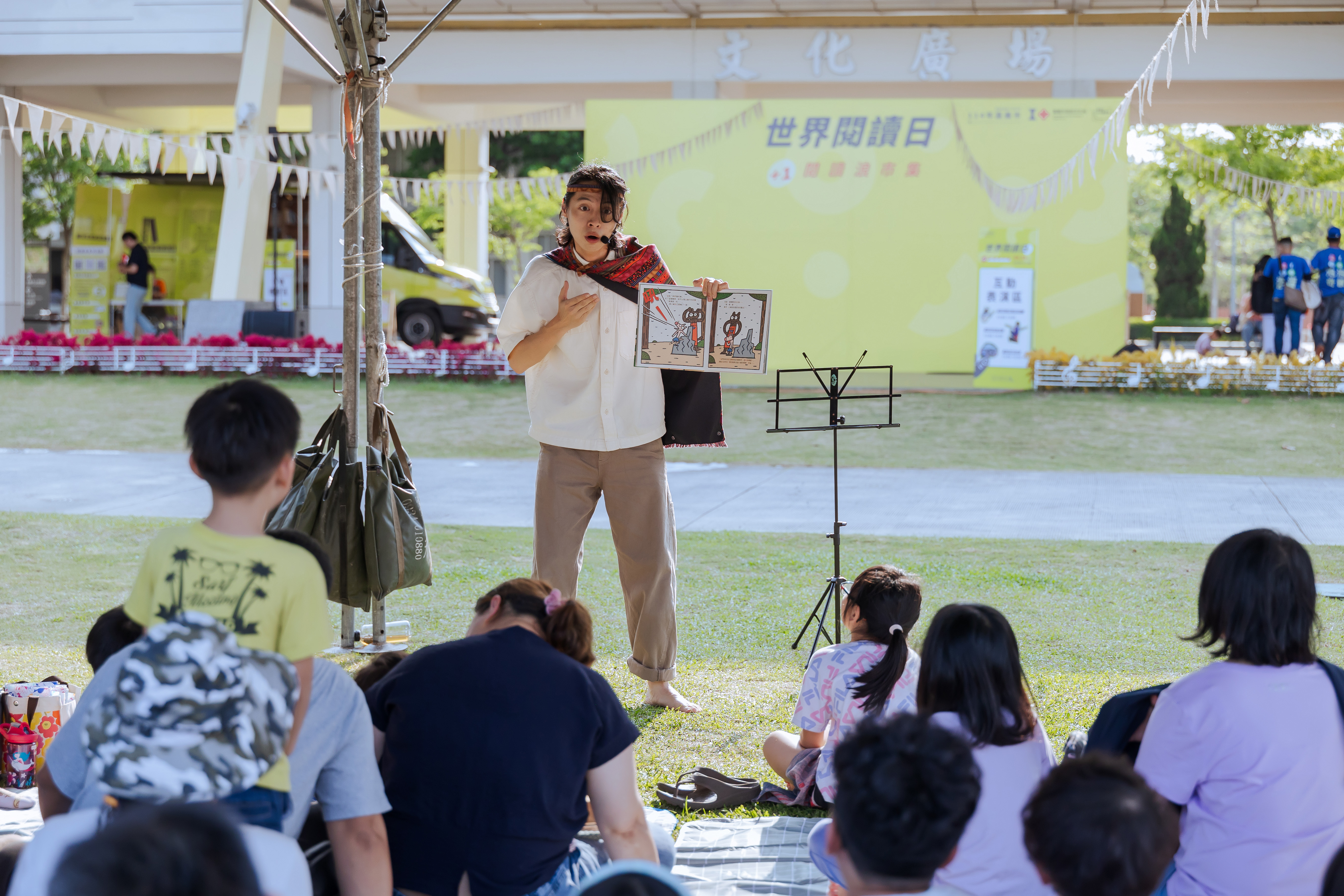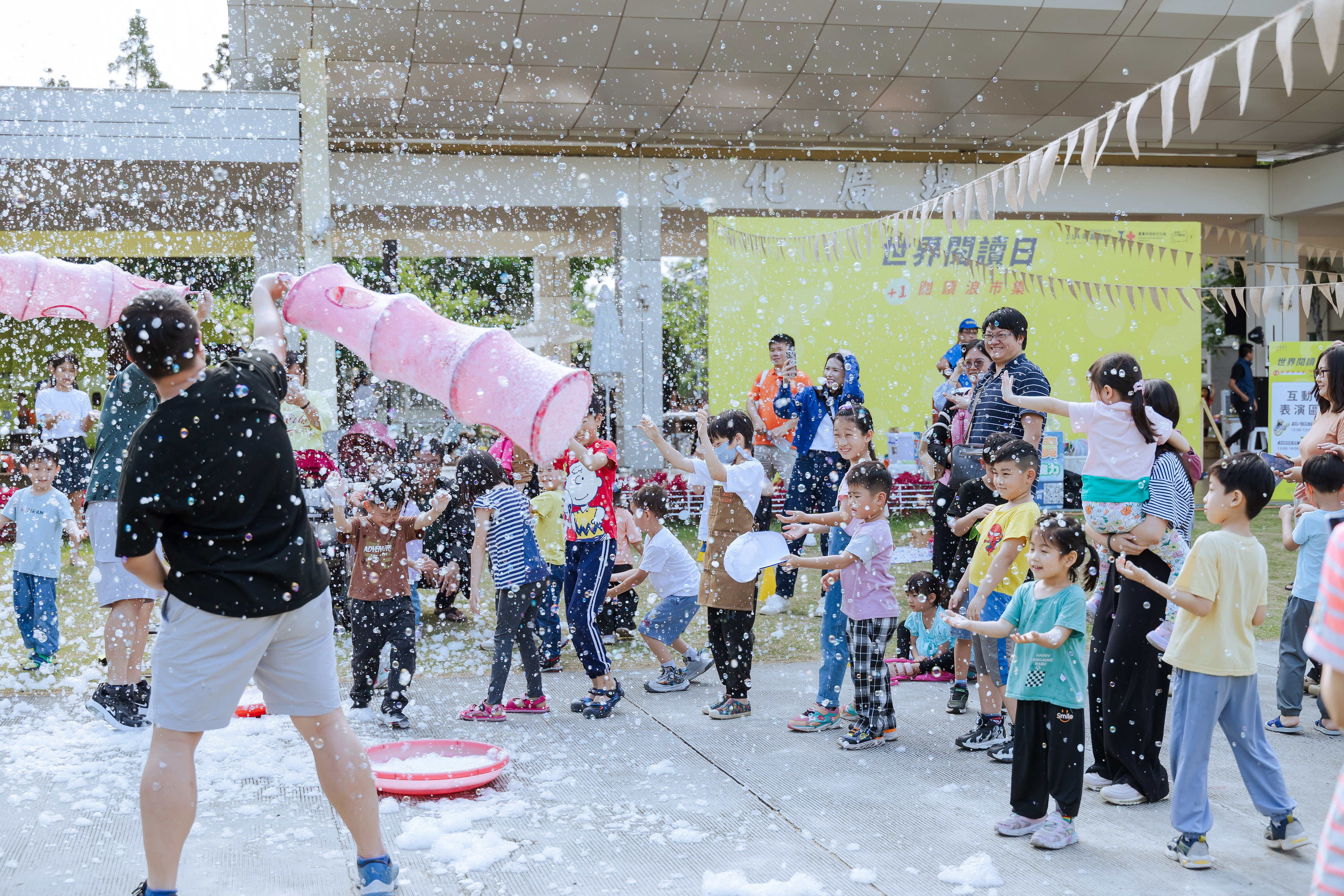 文化局謝育哲局長說,現場還匯集了獨立書店、質感文創手作與輕食攤商,讓參與民眾在書香中享受美好的閱讀日常,其中最受矚目的現場奇幻泡泡跟書車小小職人體驗活動最吸引小朋友參與,特別邀請《跟著圖書館去旅行》的作者洪敦明老師首創規劃一系列的「行動書車小小職人體驗」,除了可以體驗擔任一日圖書館員隨車策展人,協助借還書、書本上架整理等,更有大小朋友最喜愛的DIY手作活動-推薦借書卡,活動尾聲還能自行舉辦超酷的野餐墊主題書展,活動中透過家長一步步的引導及陪伴,培養孩子們的好奇心與閱讀素養,更能增加親子同樂時光。