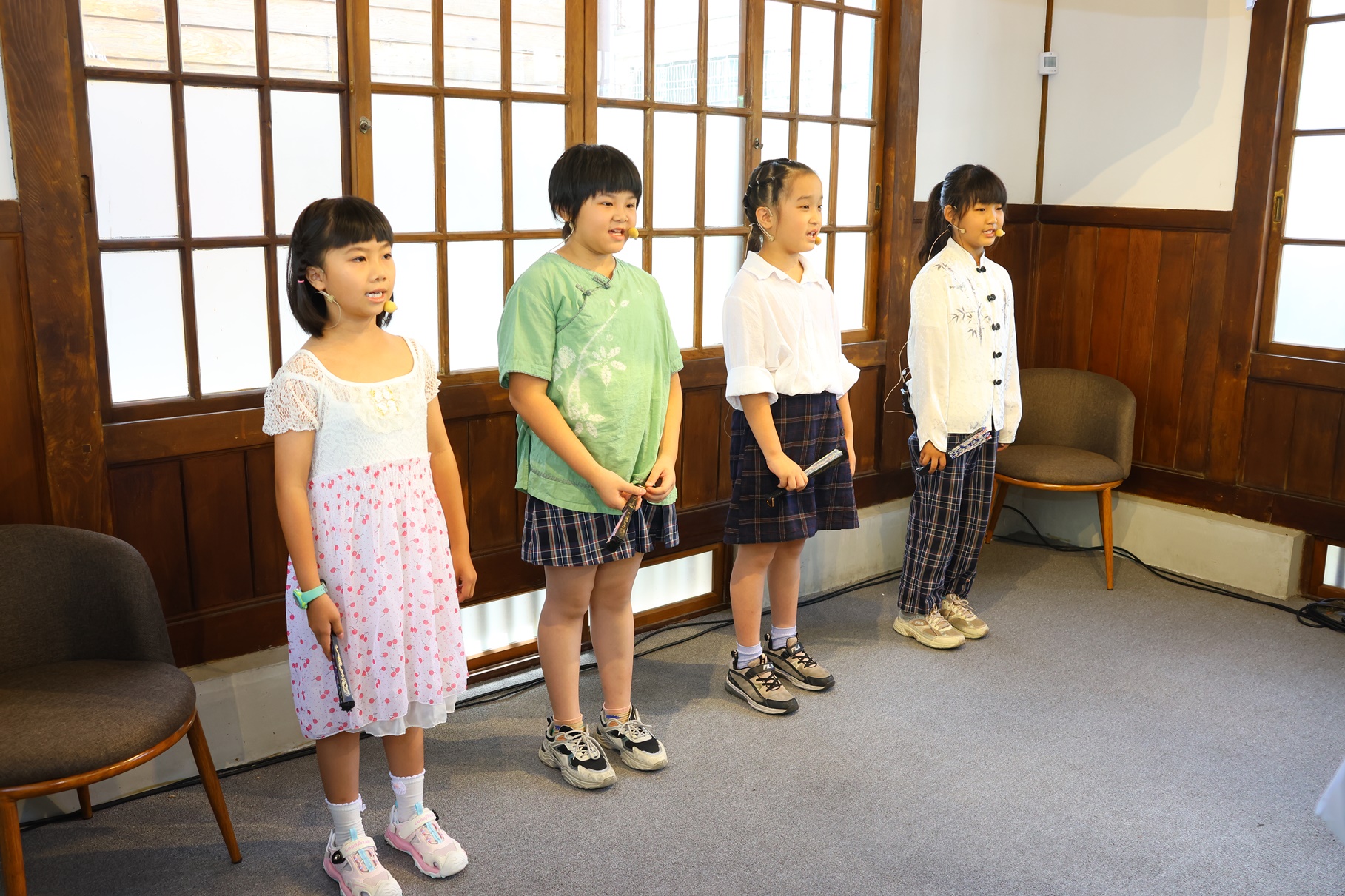 今日活動由育人國小學生清澈童稚的〈諸羅春色〉詩作吟頌揭開序幕,中正大學台文創應所所長李知灝、逢甲大學通識教育中心吳東晟助理教授,以及中興大學賴亮潔同學以充滿韻味的台語共同演繹了〈琳瑯山閣〉的詩作朗誦,精彩的演出為現場注入濃厚的文學氣息。同時,也展現文學作品不但可以閱讀,可以讀唸、吟唱、策展、導覽,還能進行無數轉譯的美好,讓更多人體會到張李德和的「快義人生」。