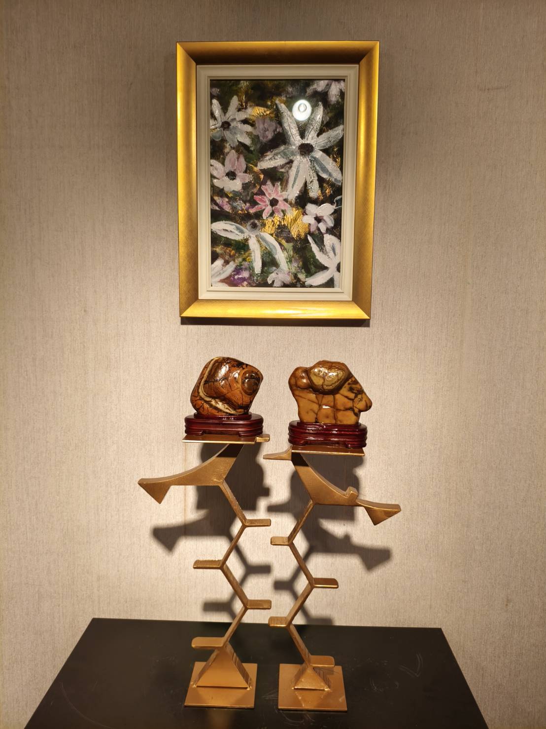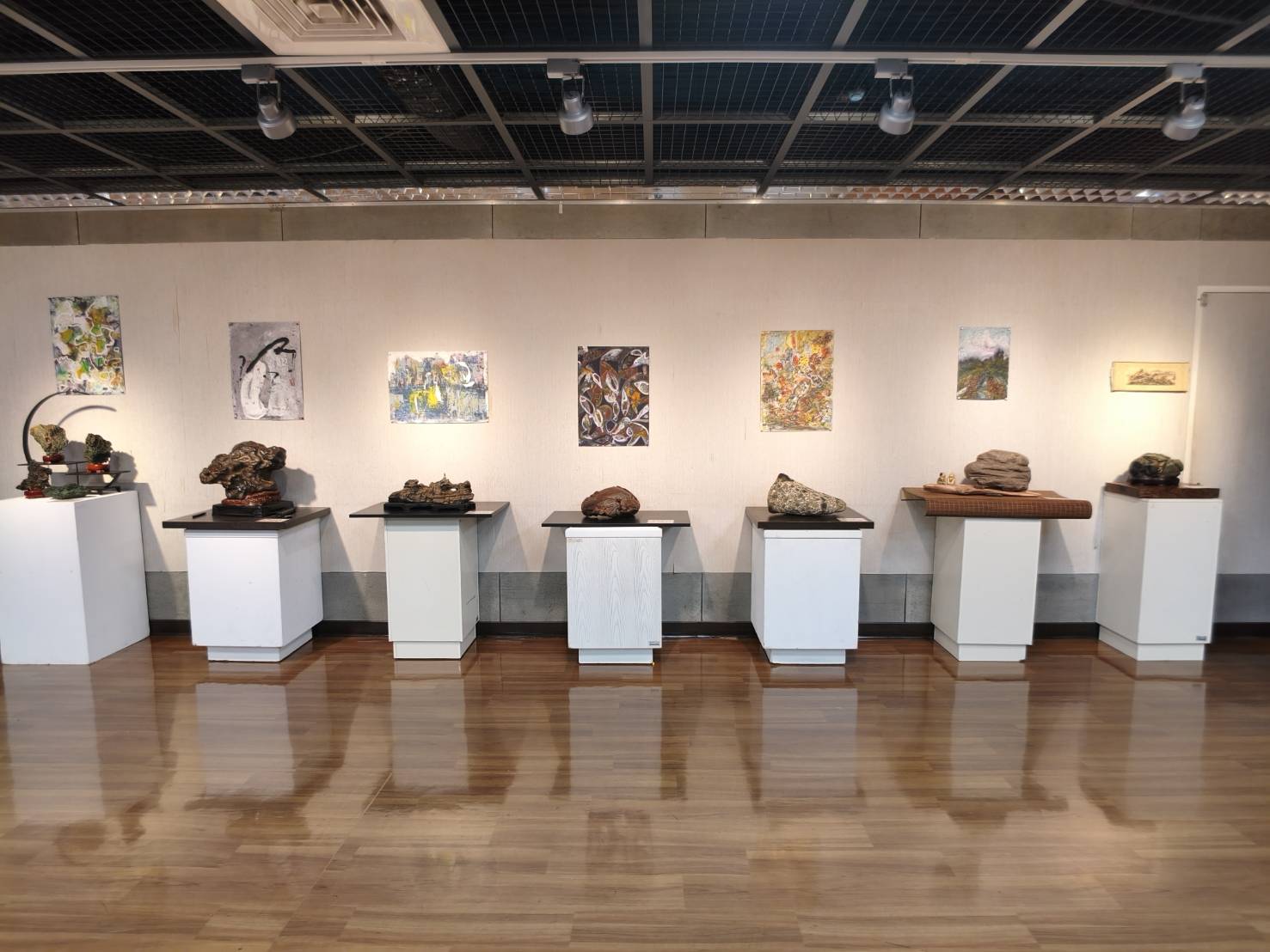 嘉義市愛石會理事長李坤聰表示,這次愛石會一共展出九十幾件作品,每幅作品都很精彩,用石頭本身的特色激發出許多創意,並且在每幅作品的背後牆上都有畫作或書法相襯,更加突顯出石頭的自然雅致與人文想像。