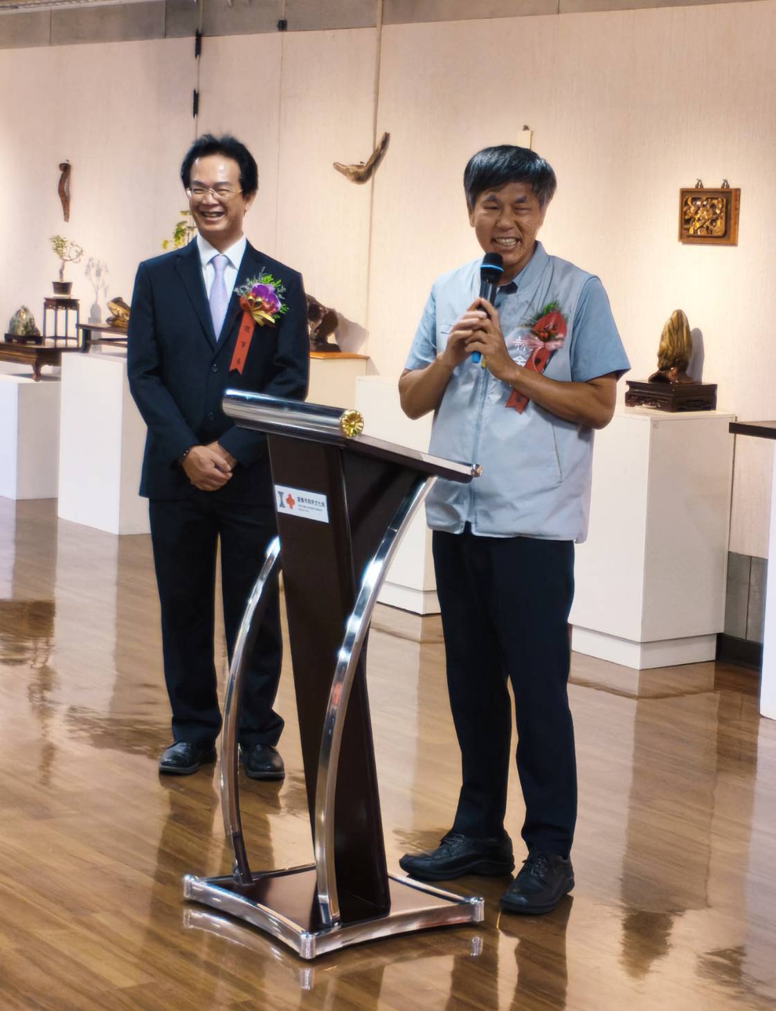 嘉義市政府文化局副局長林金龍表示,嘉義市是小而美的城市,擁有石雕、木雕、交趾陶、捏坯壺等多元文化創作技藝,同時也是愛石人士,許多人都「身兼數職」橫跨不同領域,也說明了嘉義市文化底蘊的深厚。今年適逢嘉義建城321年,文化局已經陸續推出許多活動,從12月12日到12月28日將舉辦城市博覽會,要從各個面向呈現出嘉義市的歷史與美好,歡迎各界共襄盛舉,同時也祝福愛石會展覽成功、享受收藏、享受人生。