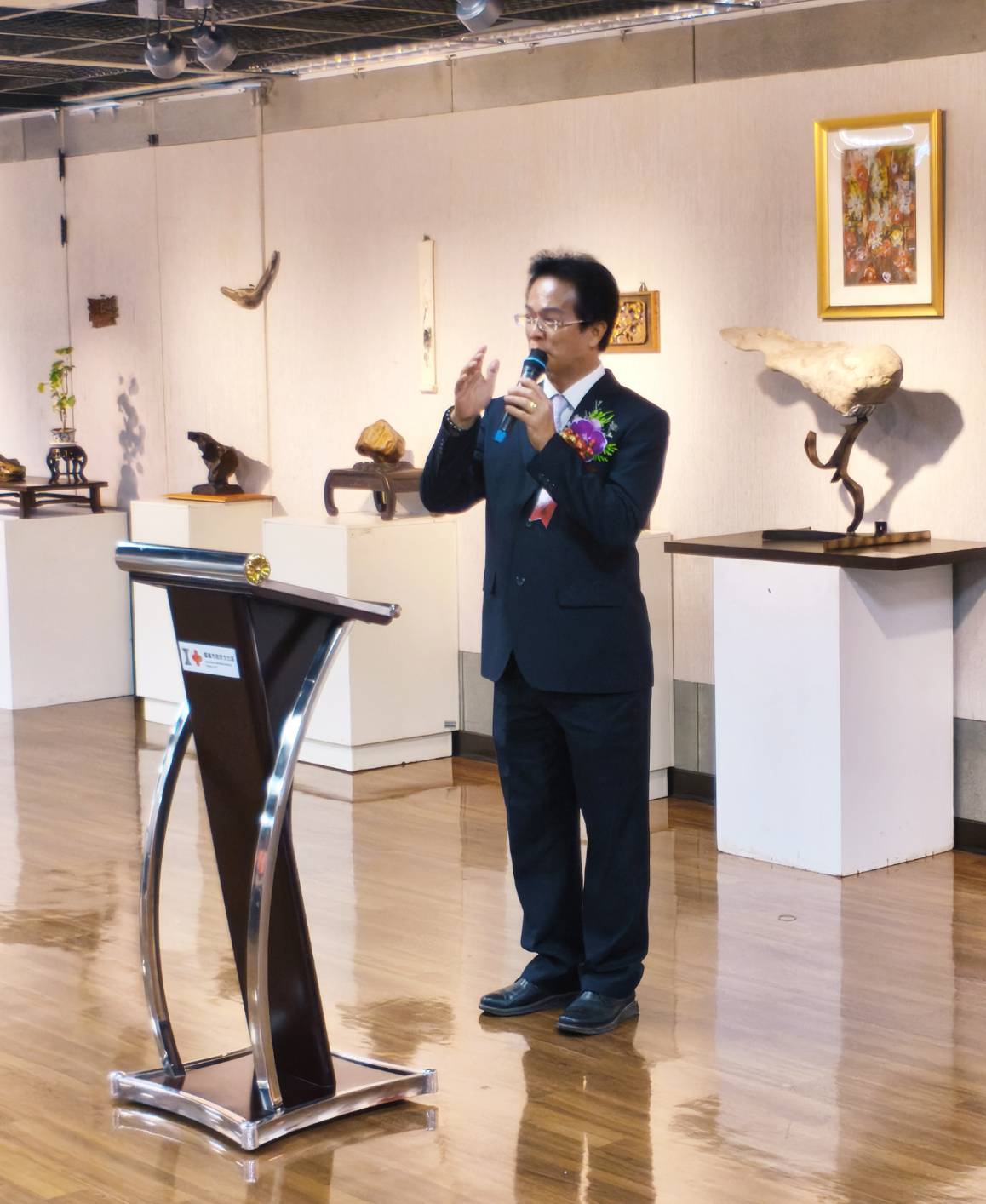 嘉義市政府文化局副局長林金龍表示,嘉義市是小而美的城市,擁有石雕、木雕、交趾陶、捏坯壺等多元文化創作技藝,同時也是愛石人士,許多人都「身兼數職」橫跨不同領域,也說明了嘉義市文化底蘊的深厚。今年適逢嘉義建城321年,文化局已經陸續推出許多活動,從12月12日到12月28日將舉辦城市博覽會,要從各個面向呈現出嘉義市的歷史與美好,歡迎各界共襄盛舉,同時也祝福愛石會展覽成功、享受收藏、享受人生。