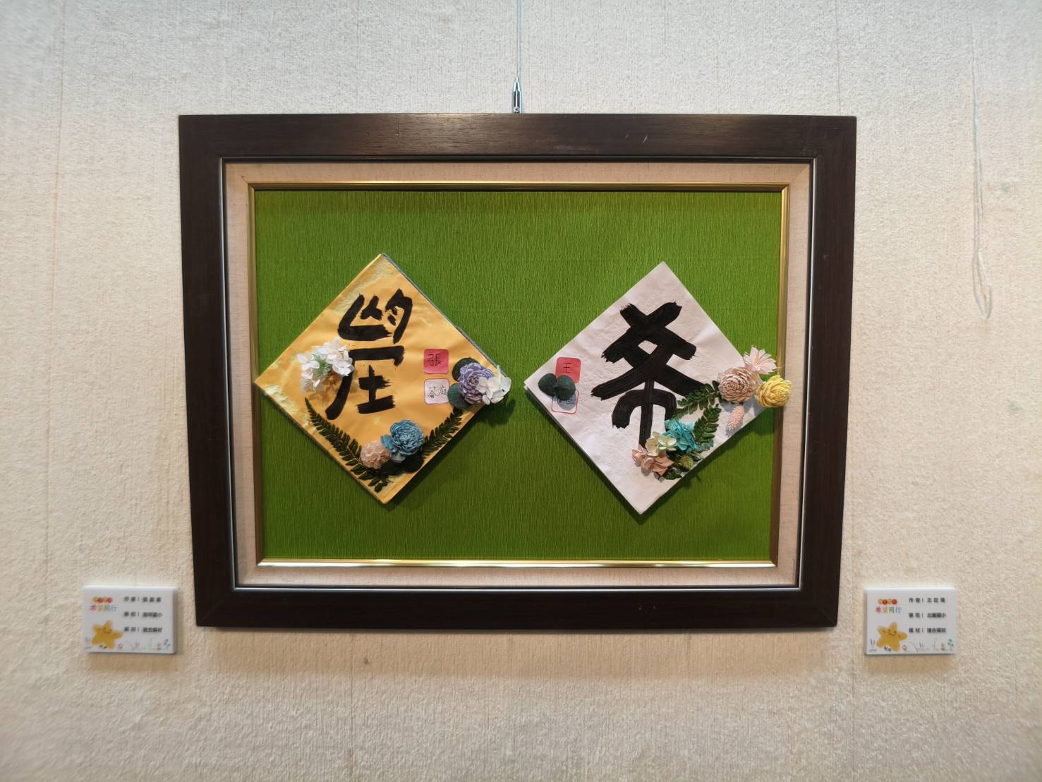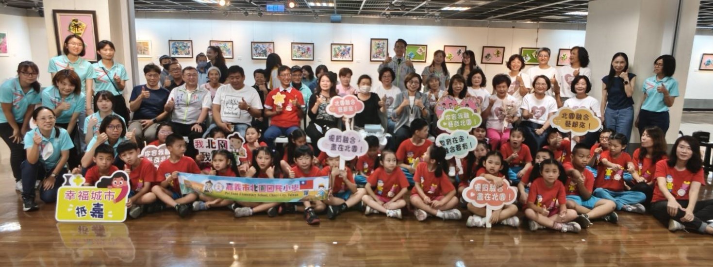 北園國小「嘉義市114年度書法花藝融合聯展-融在藝起‧希望同行」在5月29日(四)上午10時30分於嘉義市文化局文化藝廊舉行開幕,北園國小校長吳長頴、港坪國小代理校長黃相如、嘉義市女童軍會理事長簡麗環、國際崇她嘉義社社長陳明賢、嘉義市立美術館館長陳佳琦,與北園國小、港坪國小師生多人共同參與盛會。