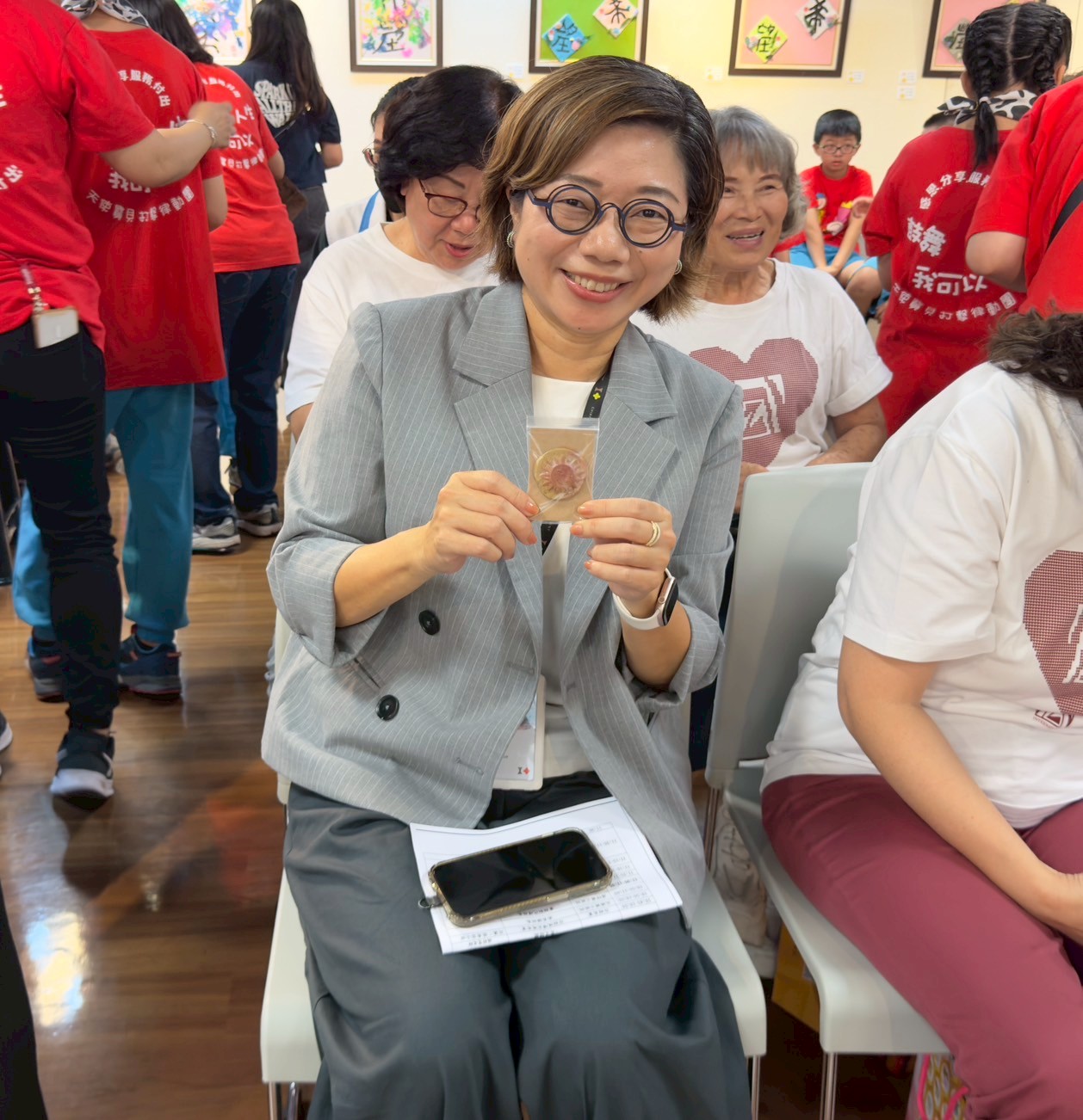 嘉義市立美術館館長陳佳琦表示,去年(113年)嘉美館辦理校園藝術扎根計畫,與本市五個學校合作,邀請藝術家走進校園,北園國小讓特教班參與這個計畫,並於去年12月7日上午在嘉美館四樓文化沙龍,特教班的孩子與其他四校一起導覽分享,陳館長也在現場,拿到了天使寶貝做的鑰匙圈,她覺得非常有意義,就把剛拿到的館長室鑰匙別在上面,並當場展示出來,獲得在場師生及貴賓熱烈的掌聲。陳館長表示今年的校園藝術扎根計畫仍然有邀請北園國小特教班,非常期待繼續看到孩子們熱情的參與。此外今年嘉義建城321年,文化局正全力投入辦理相關活動,也期盼各界熱烈共襄盛舉,把嘉義市的美好展現在國人面前。