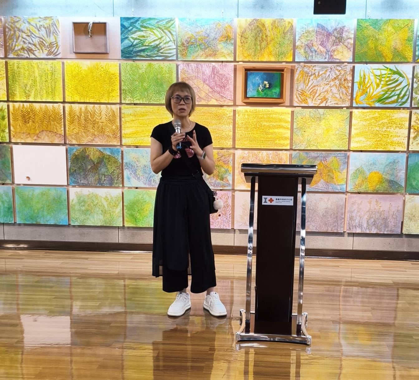 「隱符碼-曾雅苑創作展」8月16日下午2時於嘉義市文化局文化藝廊3樓舉行開幕式,嘉義市政府文化局副局長林金龍、嘉義市立美術館館長陳佳琦、嘉大人文學院院長廖瑞章、視覺藝術系研究所所長謝其昌、長榮大學美術學院院長王源東、藝術家陳政宏、邱瓊暖、鄭建昌等多位學者及藝術家及曾雅苑老師的家人都參與盛會。