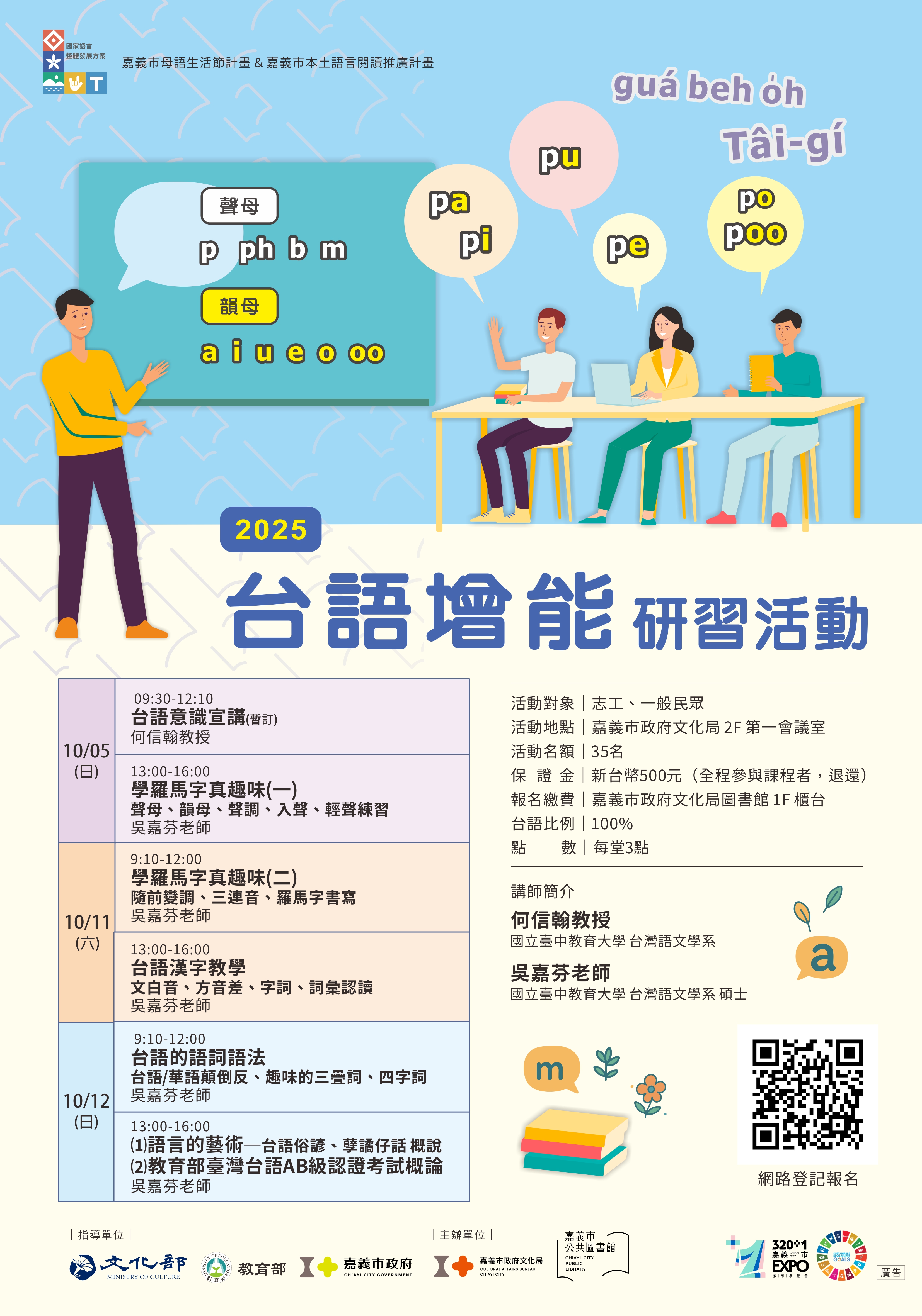 想學台語卻不知從何開始?別擔心!為推廣母語閱讀與營造友善語言環境,嘉義市政府文化局特別推出「台語增能研習活動」,從最基礎的羅馬字、聲調到有趣的俗諺、孽譎仔話,帶你輕鬆學習台語!