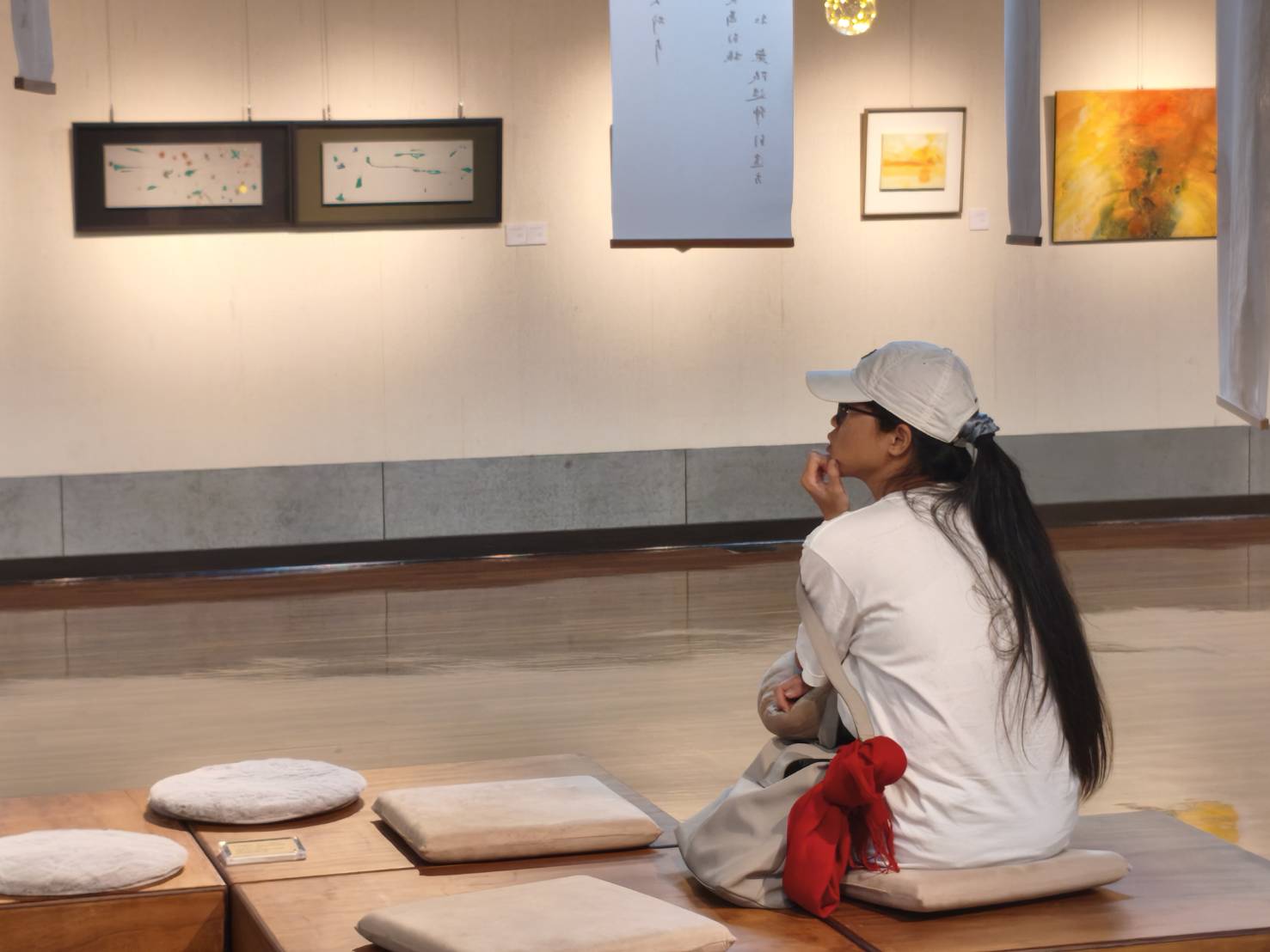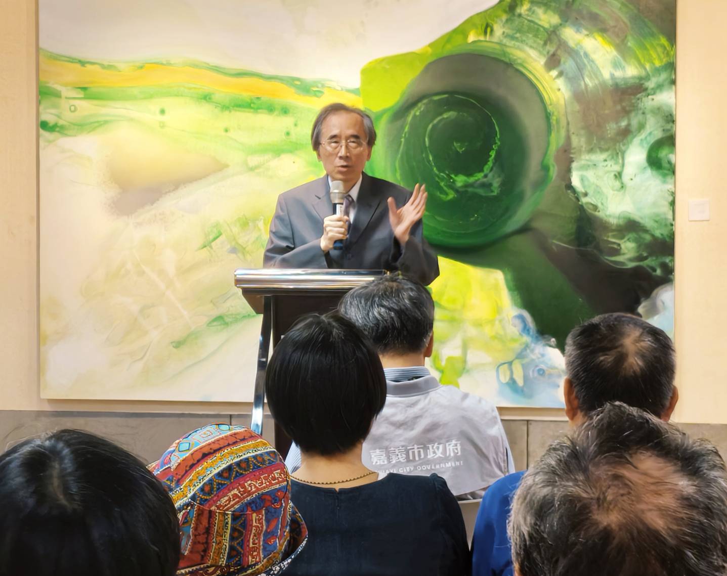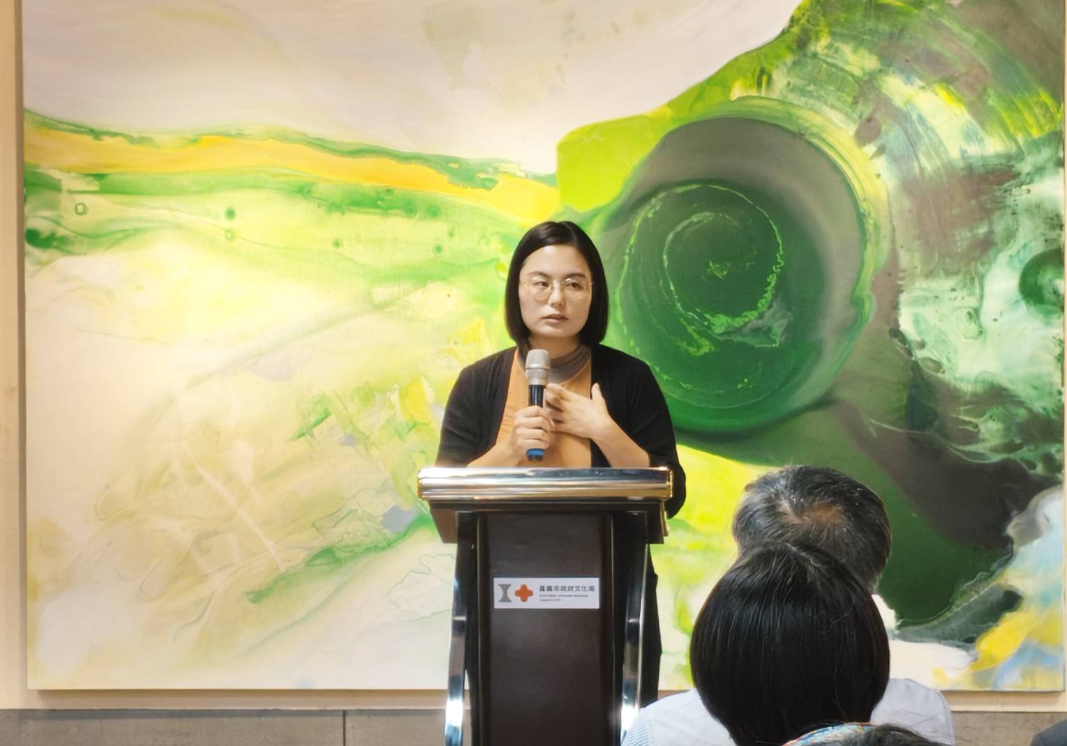 嘉義市政府文化局局長謝育哲由藝術家林虹誼導覽,仔細欣賞每一幅畫作,其中一幅畫《鳴響》是林虹誼在山上聽到鹿叫了一聲所作的創作,謝局長相當喜歡,覺得畫家的創作意念非常特別,用色構圖也很大膽。
