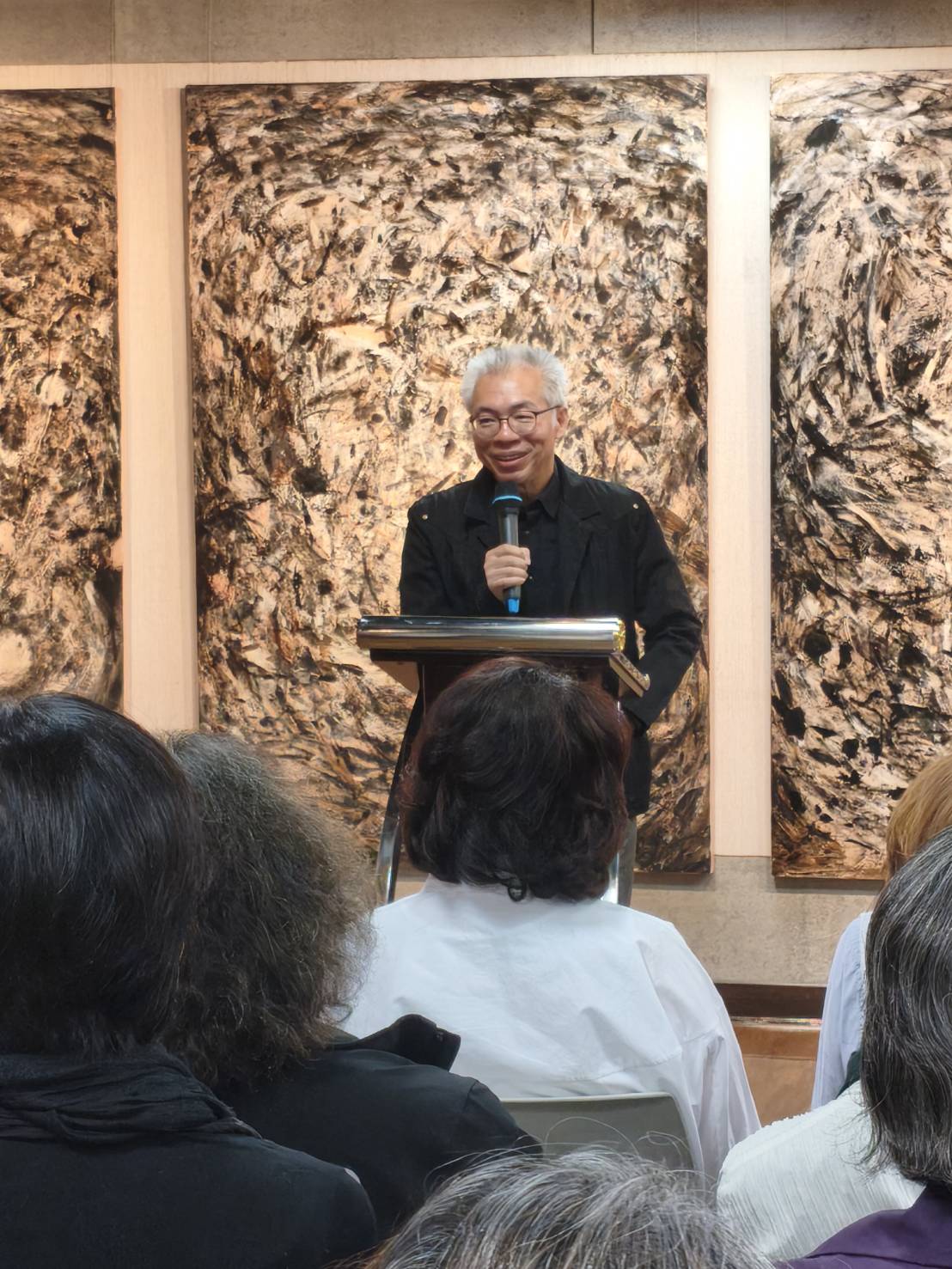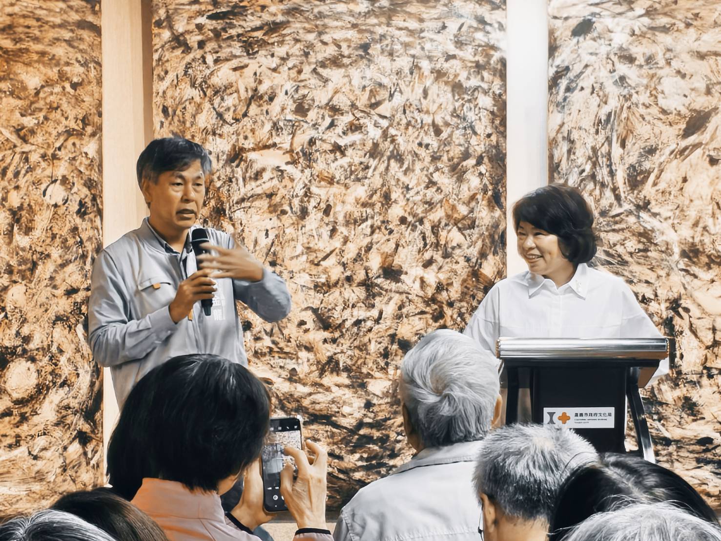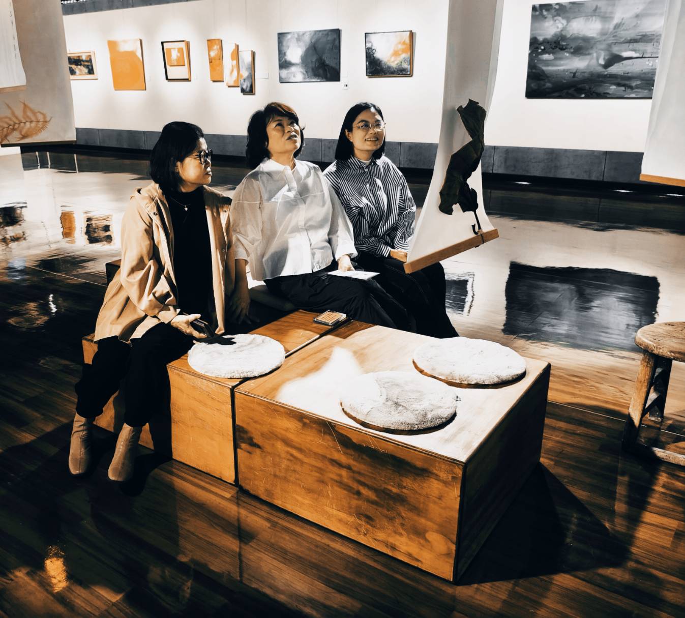 11月22日對勇媽市長黃敏惠而言,是一個行程爆滿的周六。但勇媽市長卻堅持一早先到文化局文化藝廊三樓,欣賞藝術家林虹誼的「霧之上」創作展,由藝術家林虹誼、父親知名陶藝家林文嶽、弟弟泥塑家林嘉玄一家親自接待導覽。勇媽市長即使行程滿檔,卻在緊迫的節奏中,悠緩的漫步,進入林虹誼的創作世界,不論是抽象的色彩,或是漂浮在空間中的詩句,在在都讓勇媽市長流連徜徉,甚至以最舒服的坐姿如仰望星空般注視著畫作。