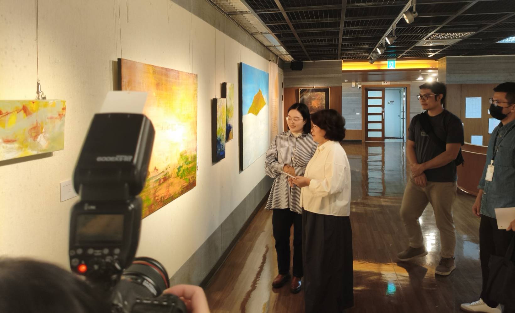 隨後,敏惠市長到文化藝廊四樓參加「而麗-新觸角30會員聯展」開幕式,到場貴賓除勇媽市長外,還有嘉美館代理館長林金龍、前文化局長賴萬鎮、議員王浩、新觸角創會會長陳慶夥、彰師大美術系陳一帆教授、資深藝術家葉茂雄、新觸角藝術群及多位在地藝術家均參與盛會。