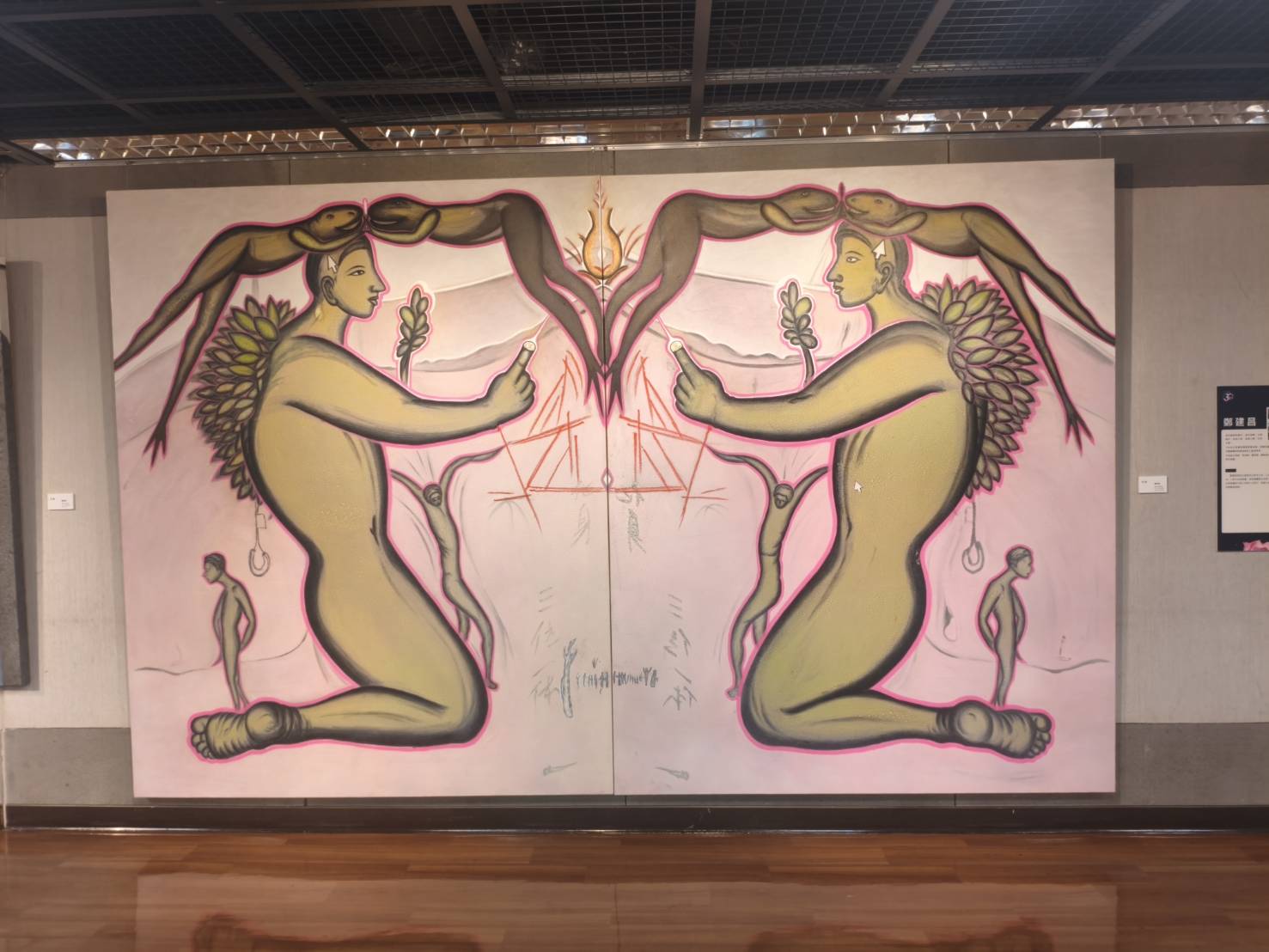 11月22日對勇媽市長黃敏惠而言,是一個行程爆滿的周六。但勇媽市長卻堅持一早先到文化局文化藝廊三樓,欣賞藝術家林虹誼的「霧之上」創作展,由藝術家林虹誼、父親知名陶藝家林文嶽、弟弟泥塑家林嘉玄一家親自接待導覽。勇媽市長即使行程滿檔,卻在緊迫的節奏中,悠緩的漫步,進入林虹誼的創作世界,不論是抽象的色彩,或是漂浮在空間中的詩句,在在都讓勇媽市長流連徜徉,甚至以最舒服的坐姿如仰望星空般注視著畫作。