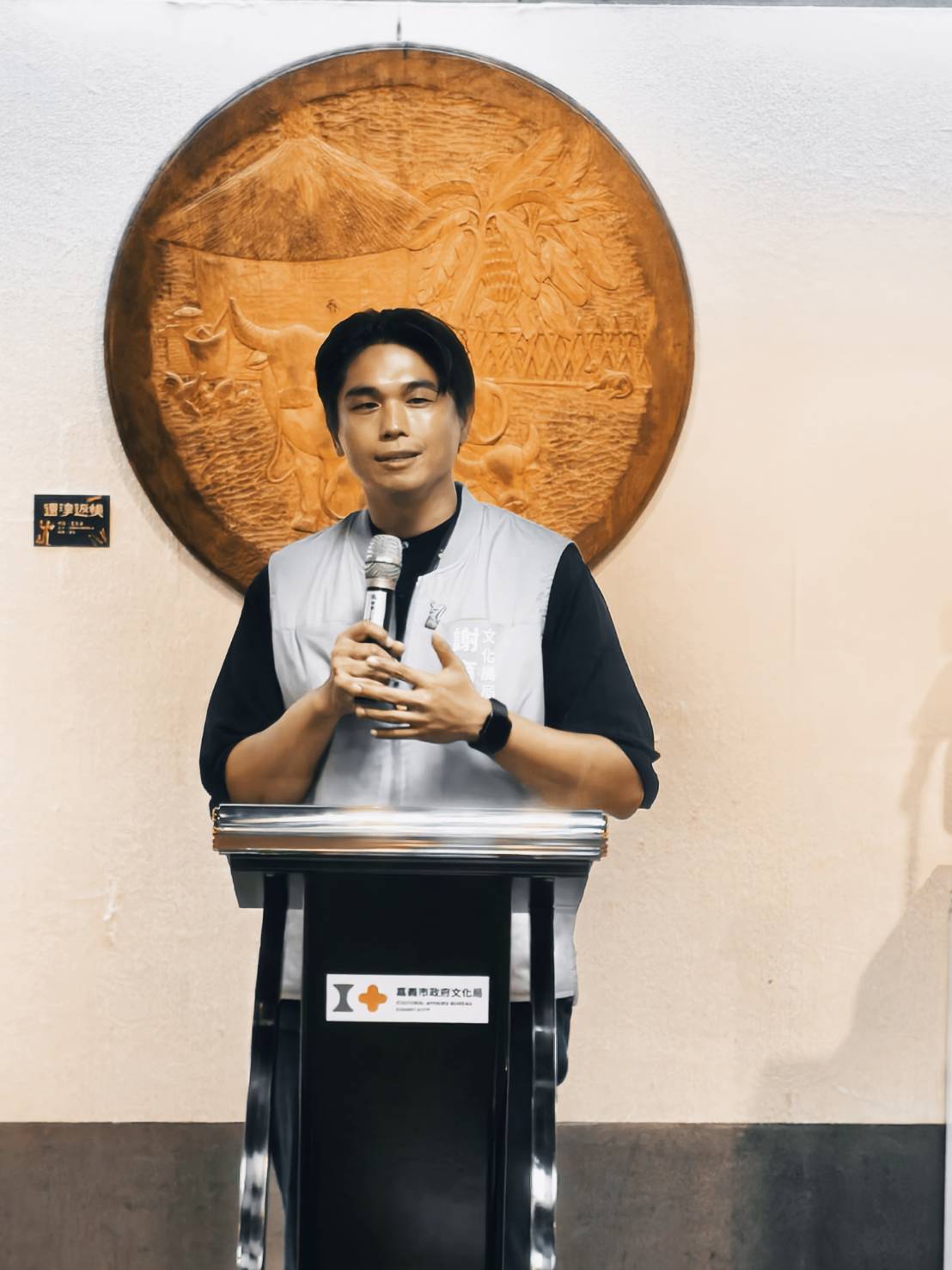 文化局長謝育哲表示,文化局在黃市長的大力支持下,也持續不斷推動傳統工藝的保存與創新,因此今年辦了「大工藝家」展覽,並且頒發了「嘉義獎」給8位藝師,另外也推動嘉義市木雕協會到三義參訪交流展出,以木雕來說,木頭可以不斷利用,甚至可以拼貼再雕刻,或是撿拾的荒木廢木都可以創造新生命,這些都是符合「永續」的目標,同時更是勇媽市長「藝術才能贏得千秋」的具體實踐。這次李宗霖大師的木雕展期剛好文化局也正在舉辦「320+1城市博覽會」,歡迎大家走進嘉義的每個角落,也走進文化藝廊,一起欣賞嘉義的美。