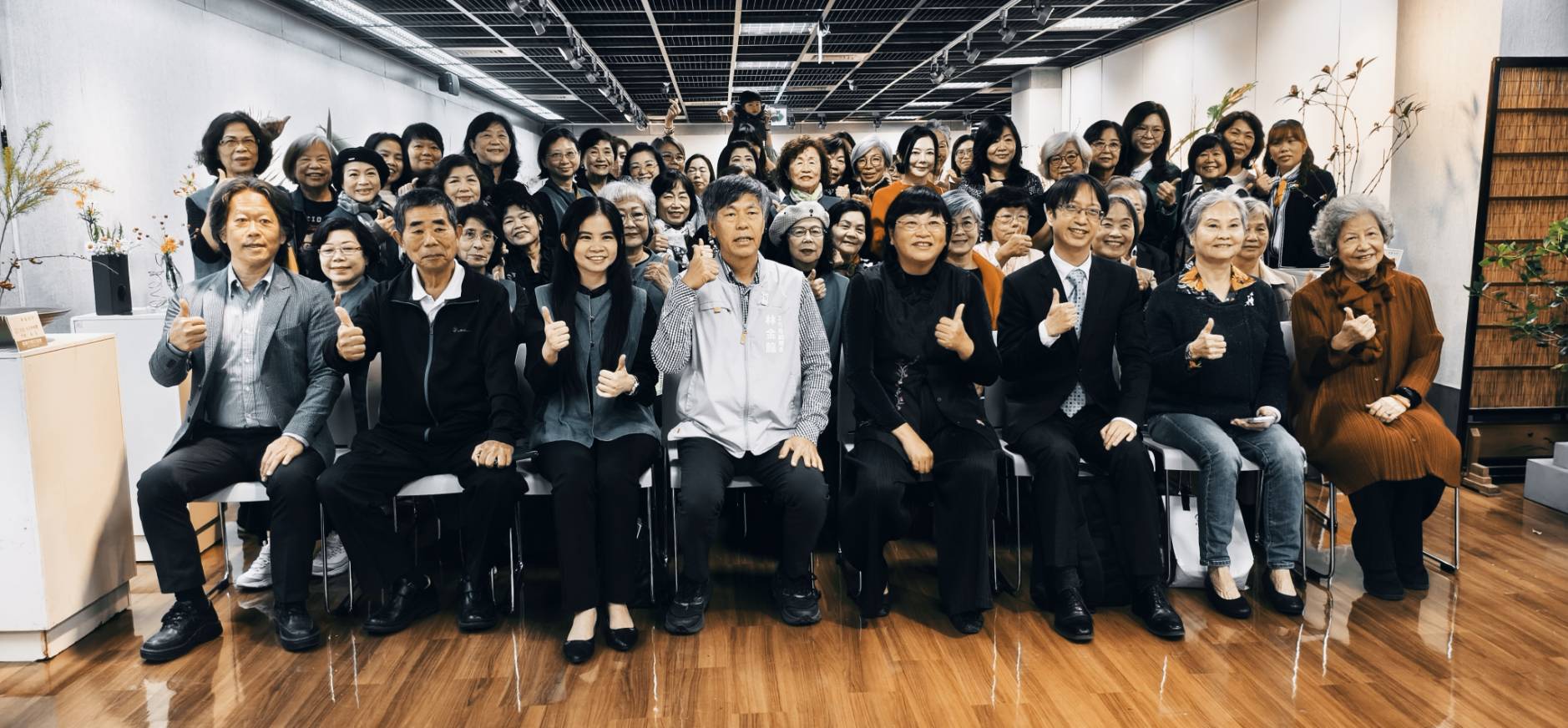 「芳香四溢諸羅城」─嘉義市插花協會2025會員插花展,12月19日上午10時於嘉義市文化局文化藝廊4樓舉行開幕式,嘉義市立美術館代理館長林金龍、財團法人中華花藝基金會執行長黃世承、嘉義市插花協會理事長楊秀鑾、四大流派前後任理事長均蒞臨與會。