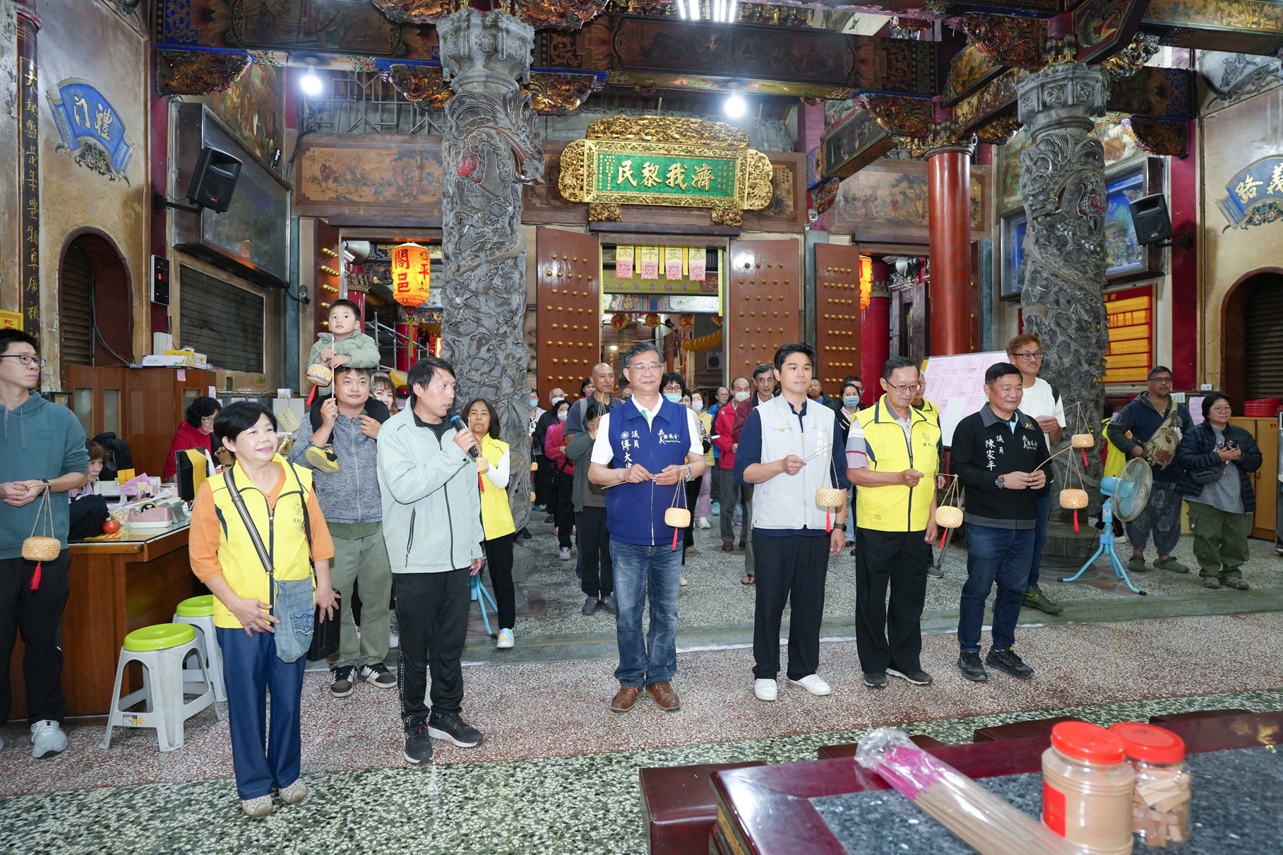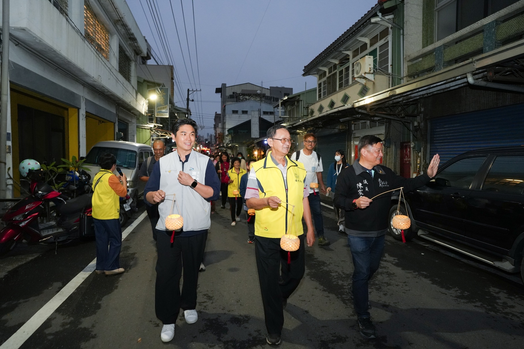 文化局說明,謝育哲局長於活動當晚與民眾一同提著燈籠漫步巷弄,在竹編工藝與夜間光影交織下,感受傳統節慶的溫度與社區創作的能量。隨後隊伍繞行嘉義市五穀王廟(大天宮)祈福,象徵傳統信仰與當代藝術的融合,也展現社區透過節慶儀式活化公共空間、凝聚居民情感的具體成果。