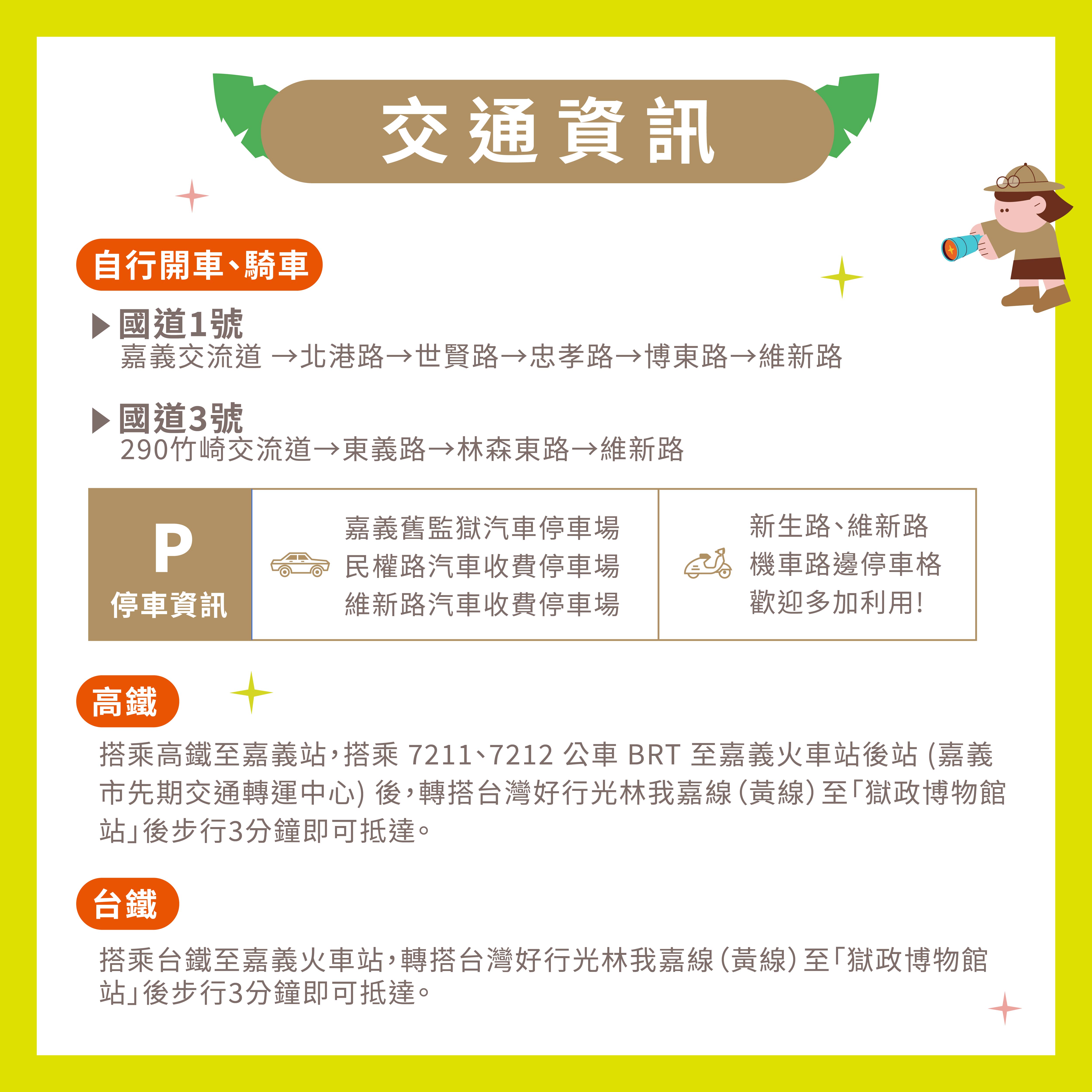 「世界閱讀日x地球日:旅讀探險家」是嘉義市響應世界閱讀日及地球日的特別企劃,不僅是一場閱讀推廣活動,更結合了對環境的承諾與永續理念。透過閱讀與生活體驗,鼓勵市民在日常生活中實踐綠色行動,共同投資我們唯一的星球。誠摯邀請市民朋友於4月18日前往嘉義舊監獄宿舍群,一同展開別具意義的閱讀探險旅程,感受融合閱讀與永續的「嘉義式綠色閱讀日」。